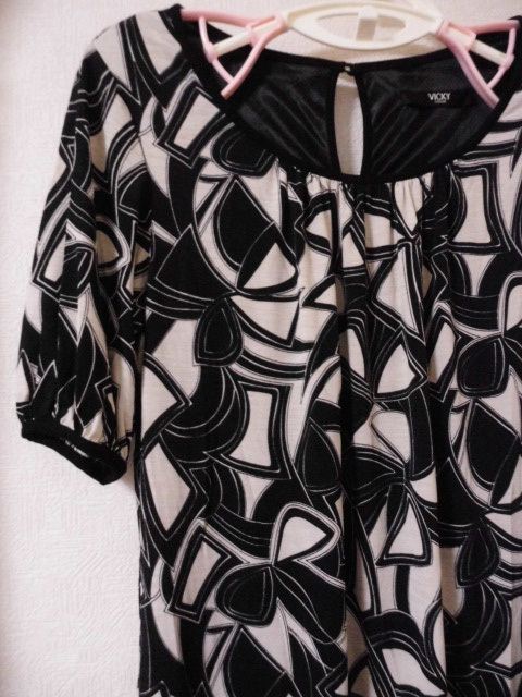 お得♪ 即決有 VICKY ビッキー ブラック×アイボリー 半袖 ワンピース 2 〒185