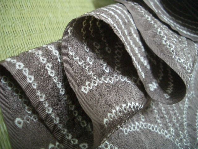 古布正絹絞りはぎれ松海波 160㎝ アンティーク昔着物リメイク古裂しぼり