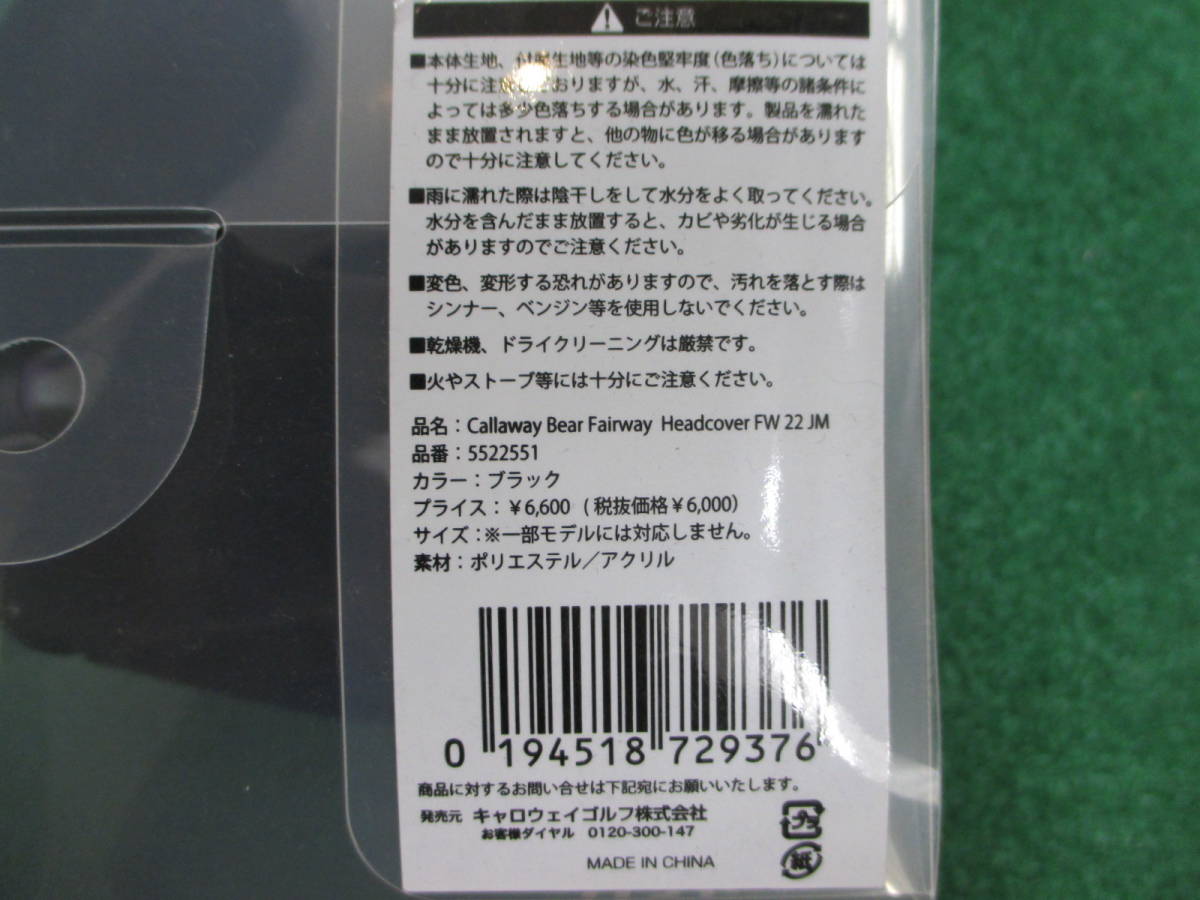 品名:Callaway Bear Fairway Headcover FW 22 JM