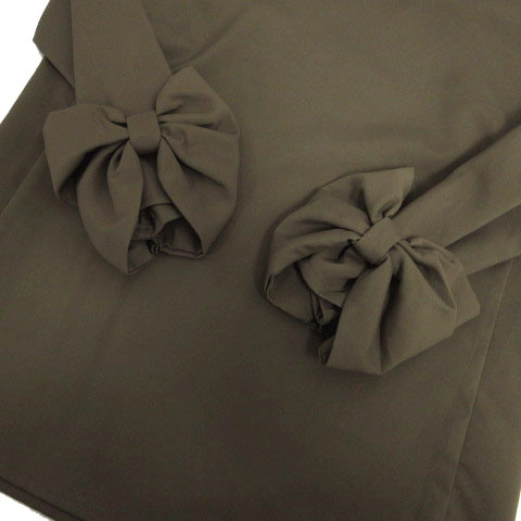 トッコクローゼット tocco closet カットソー ボートネック 七分袖 袖リボン ブラウン系 カーキブラウン M レディース