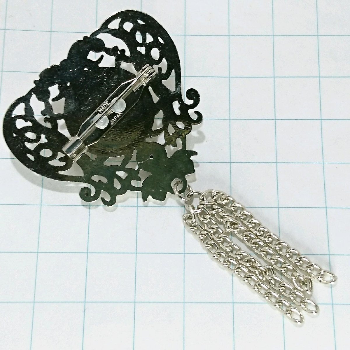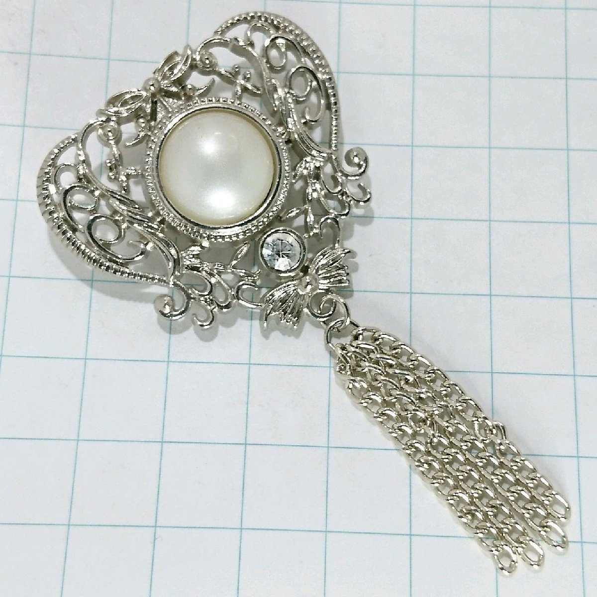 送料無料)ビンテージ☆パールエンブレム チェーン☆アンティーク ブローチ A20479