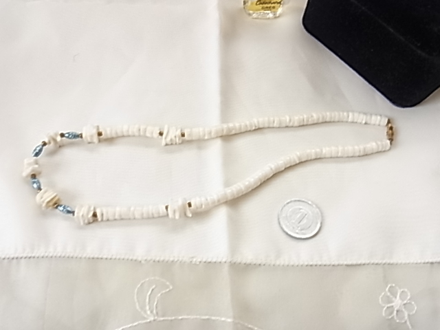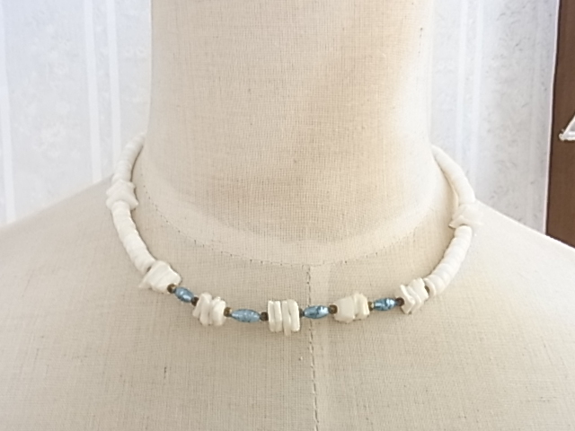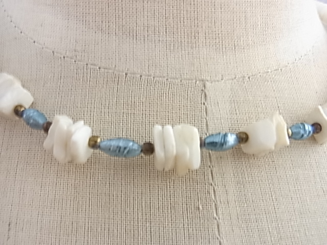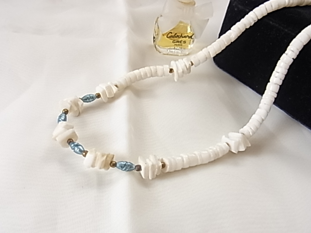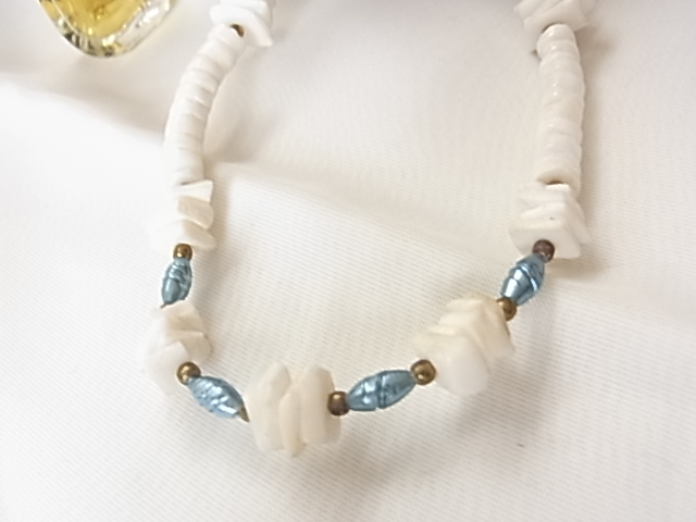 ビンテージ/ヴィンテージ シェル?材質不明 ブルーの差し色のビーズストーンが爽やか 清潔感のある白 ホワイト ネックレス▽