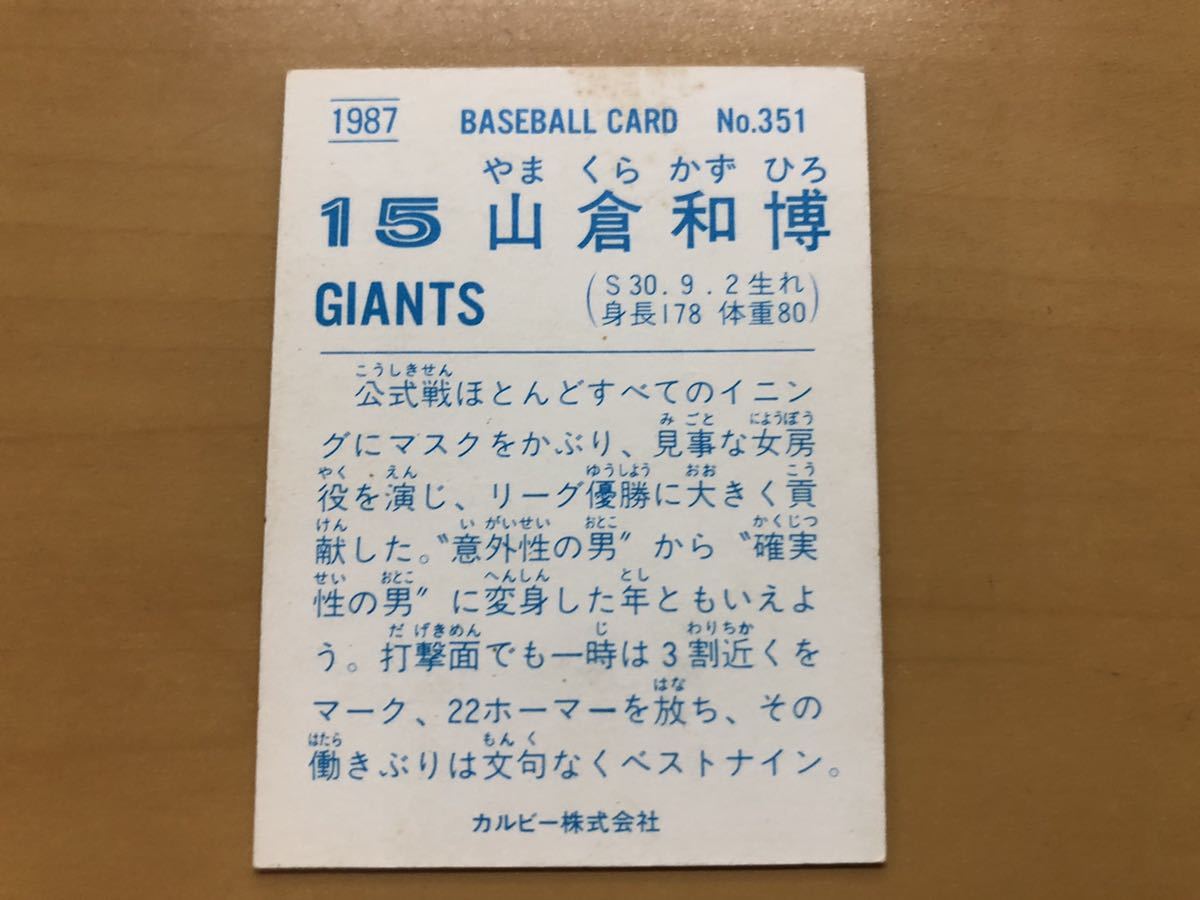 金枠 MVP カルビープロ野球カード 1987年 山倉和博(巨人) No.351