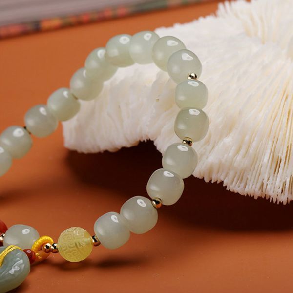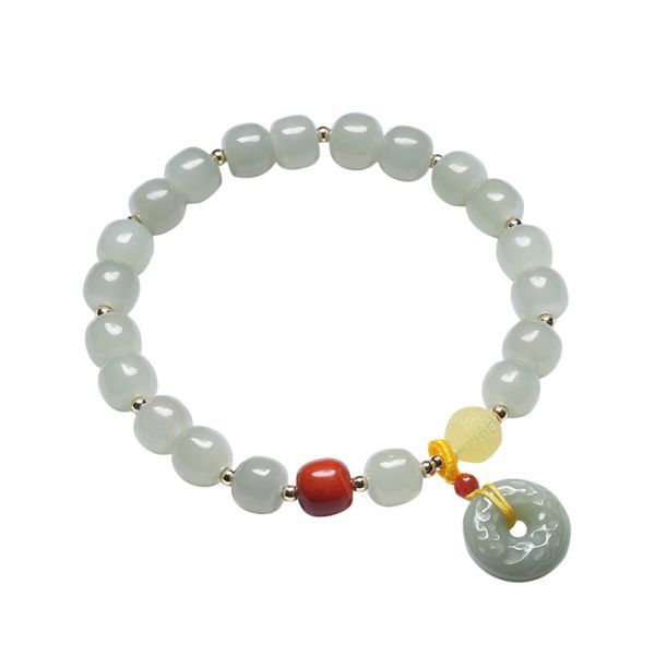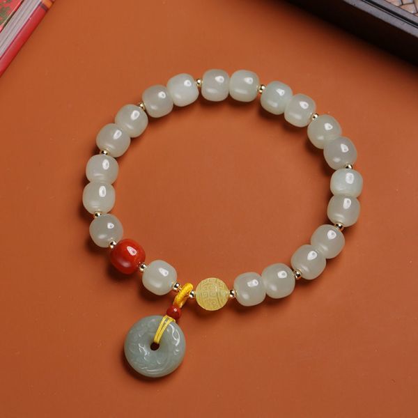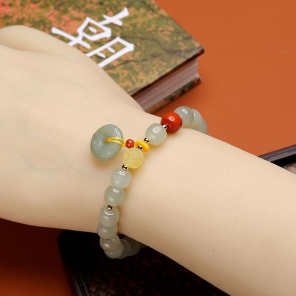 [EasternStar] 天然 和田玉 平安扣 南紅瑪瑙 蜜蝋 花彫る 14K金 平安守り 御守り ブレスレット