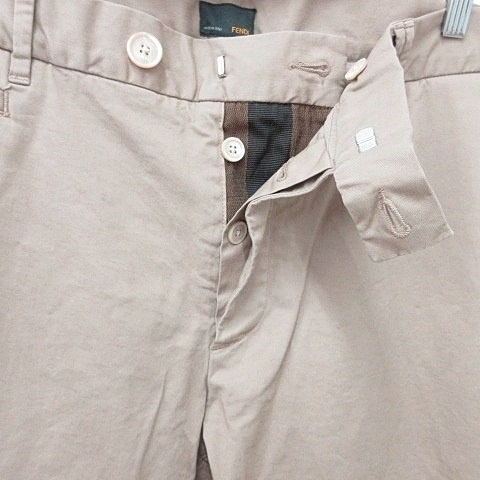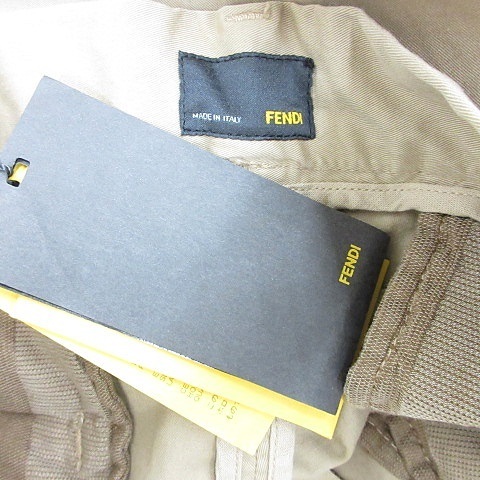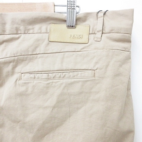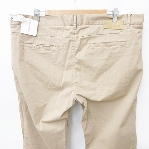 未使用品 フェンディ FENDI パンツ チノパン ロング ボタンフライ ストレッチ コットン ベージュ 58 メンズ