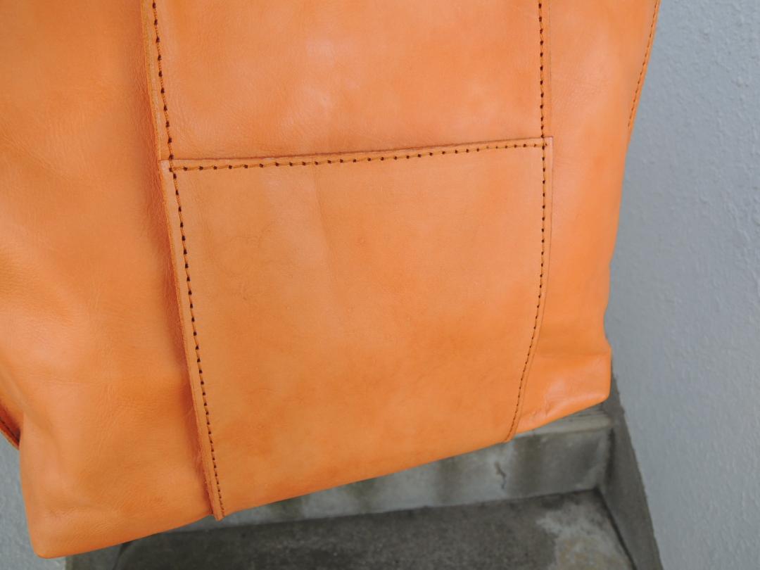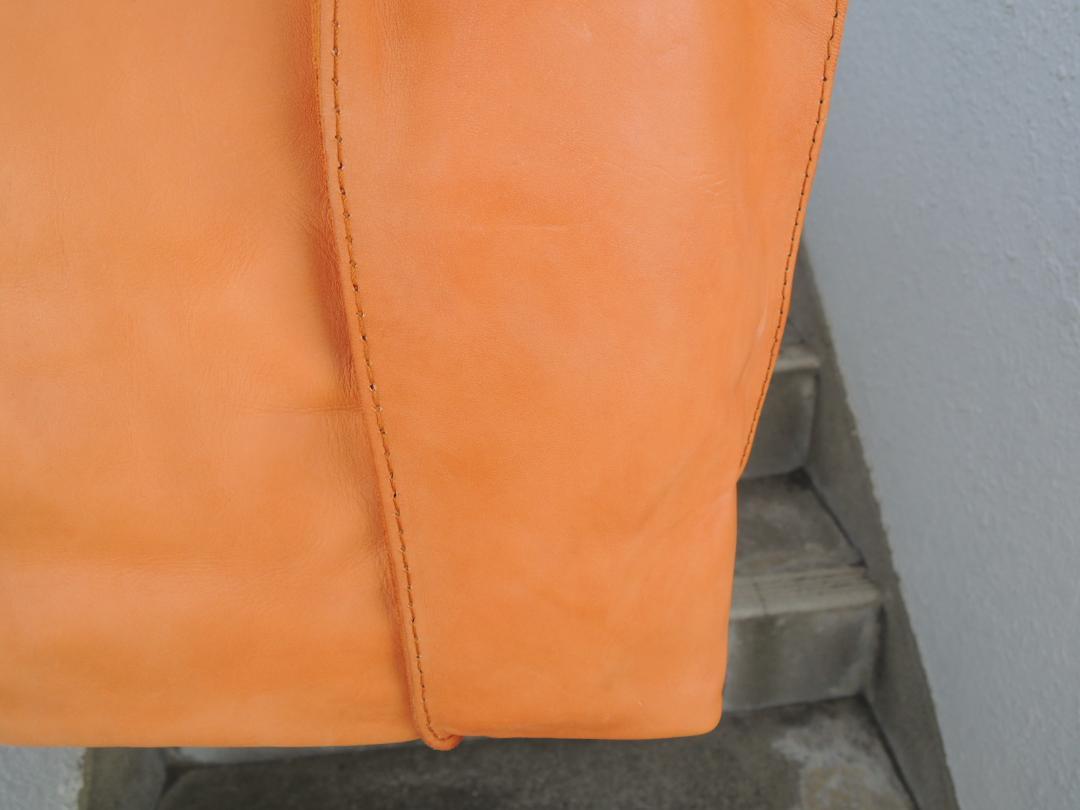 使用していくうちに、すごく柔らかくなる革で、色も変化して行くので、お気にならなくなると思います。