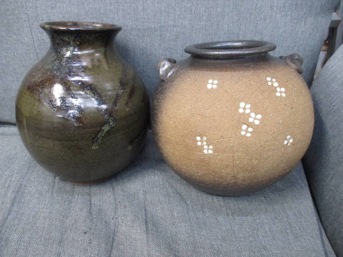 陶器 花瓶2点(信楽焼小花8号他) 検 アンティーク、コレクション 工芸品 陶芸 日本の陶磁 信楽 花器、壷