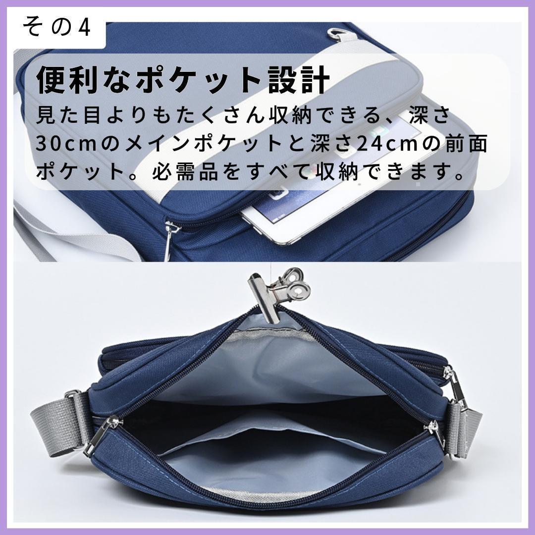 バッグにはファスナーポケットが前面に、オープンポケットが内側についています。前面ポケットの深さは約24cmで、携帯や財布、手帳などが収納可能です。メインポケットの深さは約30cmで、B5サイズのノートなどが収納可能です。