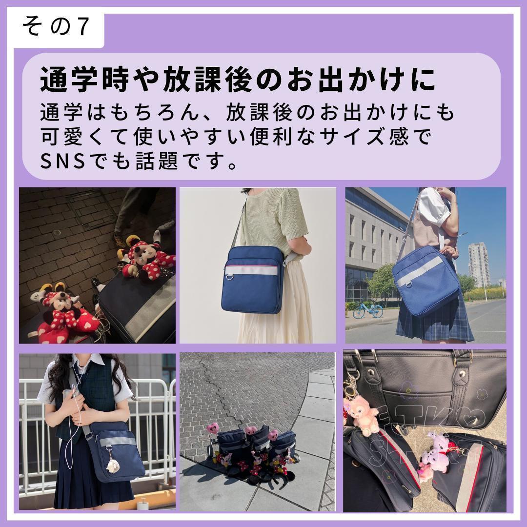 デザインはシンプルで、制服コーデに合わせやすいです。通学だけでなく、放課後のお出かけにもピッタリなサイズ感です。SNSでも話題となり、見た目以上の収納力が魅力となっています。