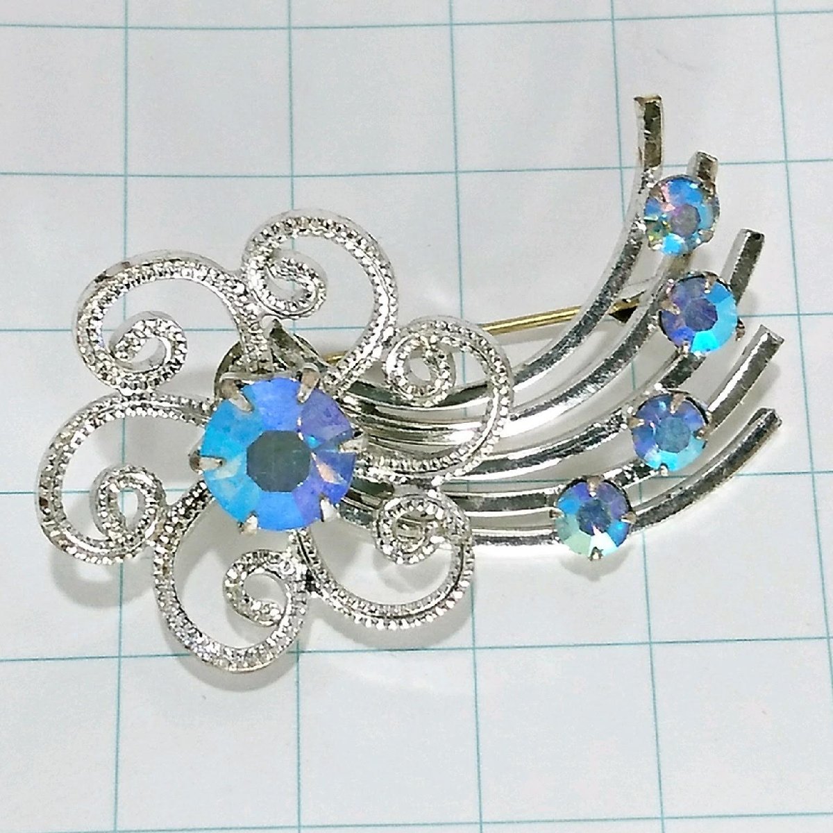 送料無料)ビンテージ☆レインボーラインストーン お花モチーフ☆アンティーク ブローチ A20689