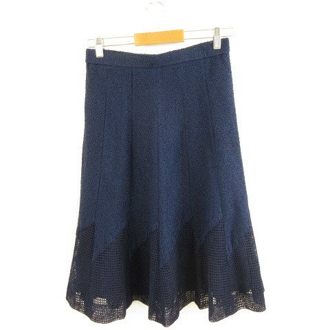 LUPORTE ひざ丈スカート メッシュ フレア 紺 66 *A952 レディース