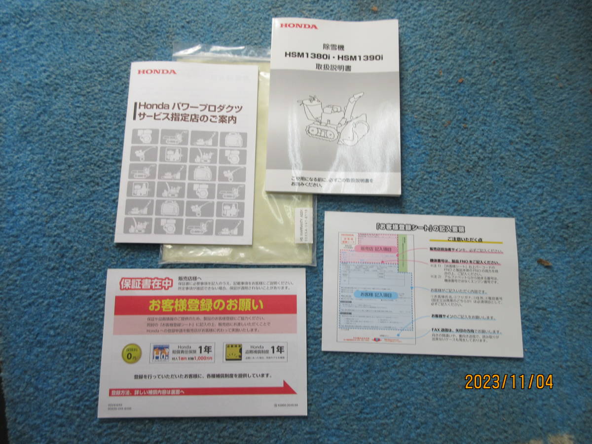 送料無料!在庫1冊のみ!ホンダ除雪機★HONDA・HSM1380i HSM1390iの取扱説明書一式★HONDA純正・宅配達可能!