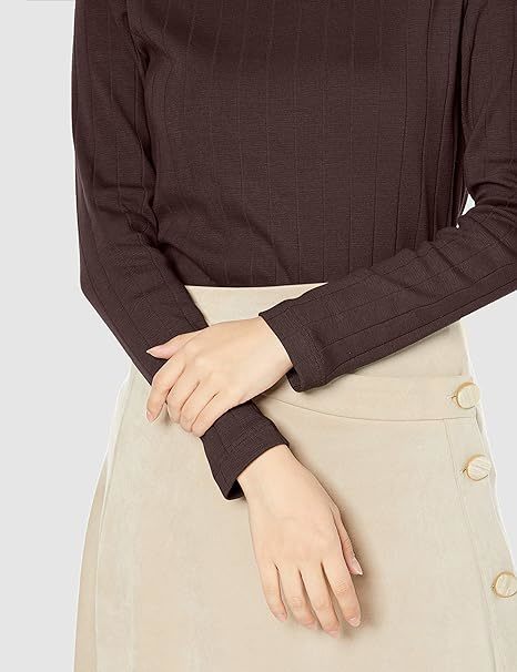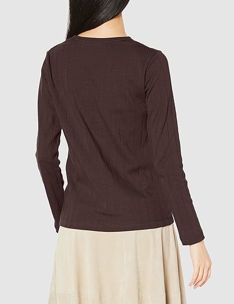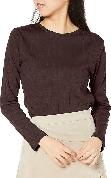 値下げ ホットコット 綿100% あったか ワイドリブ 長袖カットソー クルーネック ブラウン【S】 レディース コットン リブ 秋冬 送料込み