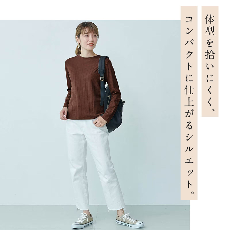 ワイドリブの縦ラインで視覚的な着痩せ効果もプラス。