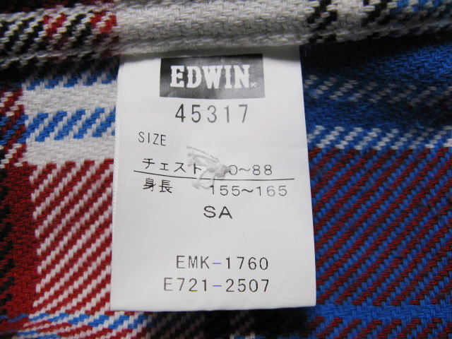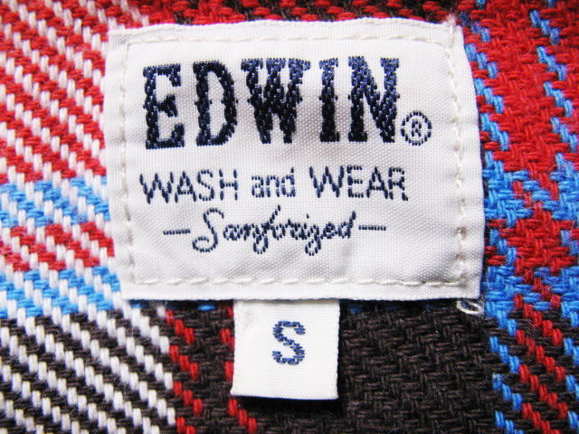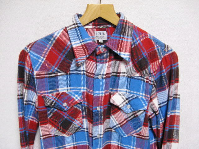 美品 EDWIN エドウィン 厚手 チェック柄 長袖 ネルシャツ S ヘヴィネル