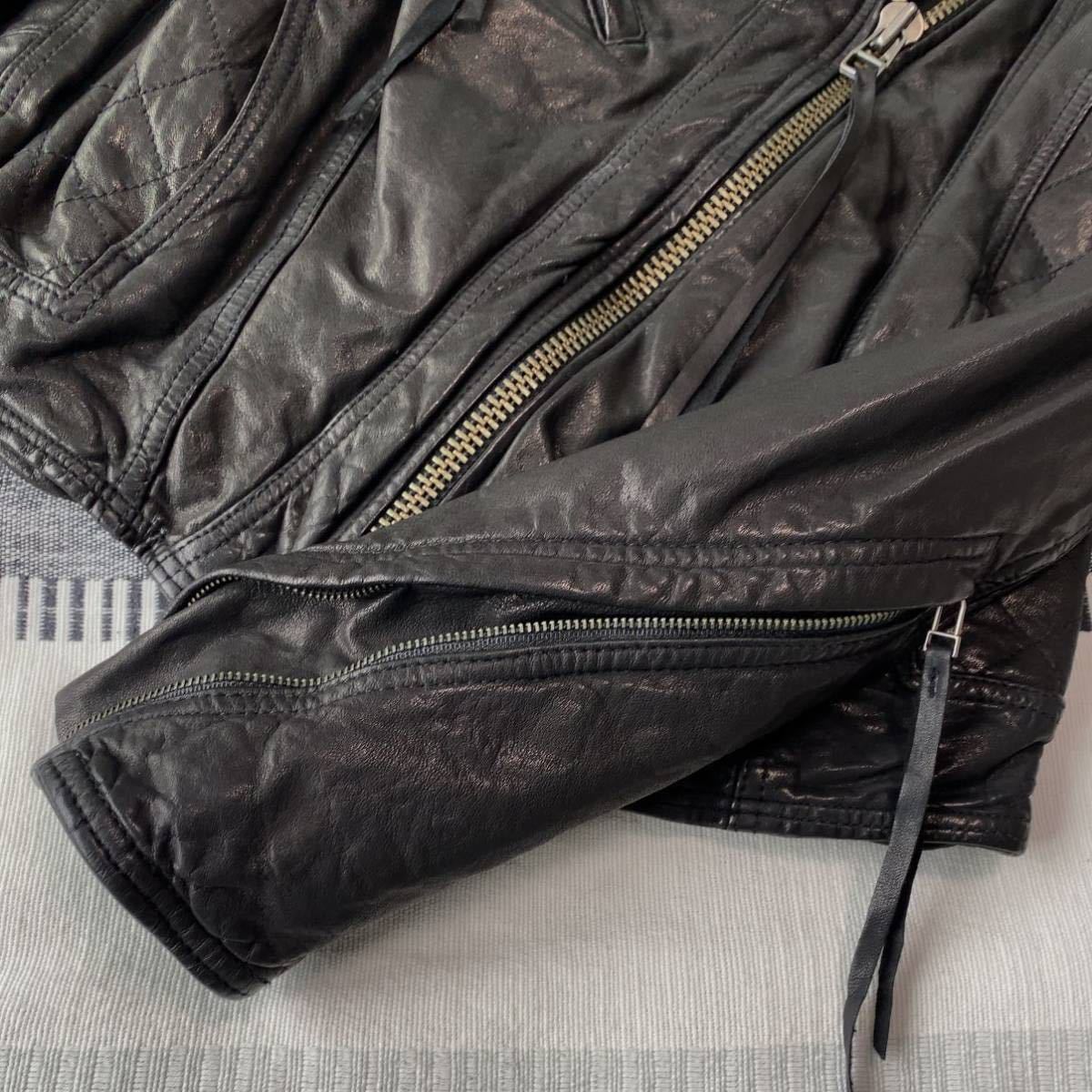 サイドがキルティングになっていたり、デザインのあるボタン、ジップの引手に長いレザーコードがついていたりと細部まで凝ったデザインになっています。
