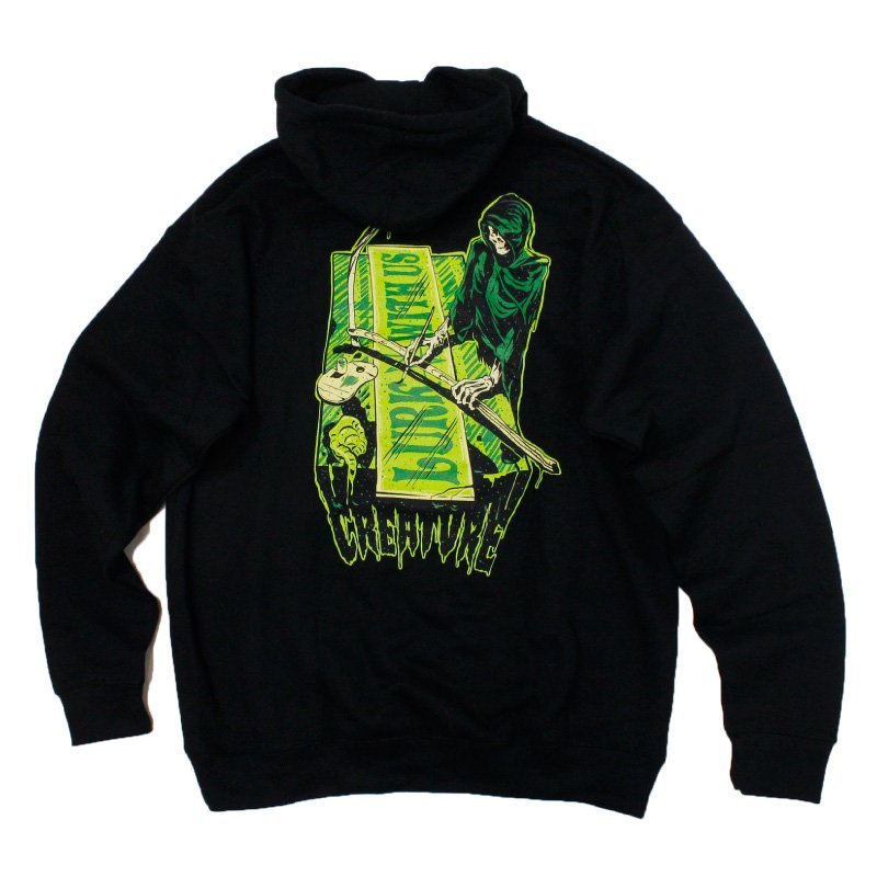 セール SALE 新品 CREATURE クリーチャー パーカー フーディー プリントスウェット 死神 スカル 黒 L