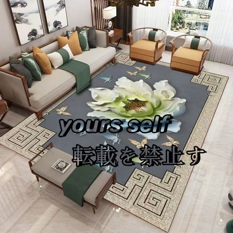 ハスの花が上品*カーペットリビングカーペットタペストリーベッドサイドの部屋大面積カーペットキッチン戸口マット滑り止め機洗い200*200cm