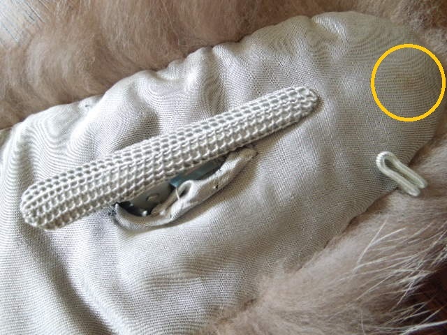 写真でもお分かりいただけると思いますが、裏地に少し汚れがあります。