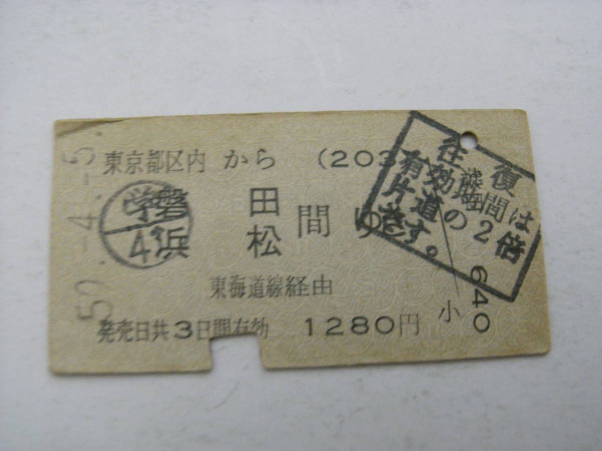 東京都区内から磐田 浜松間ゆき 東海道線経由 昭和50年4月5日 日暮里駅発行 国鉄