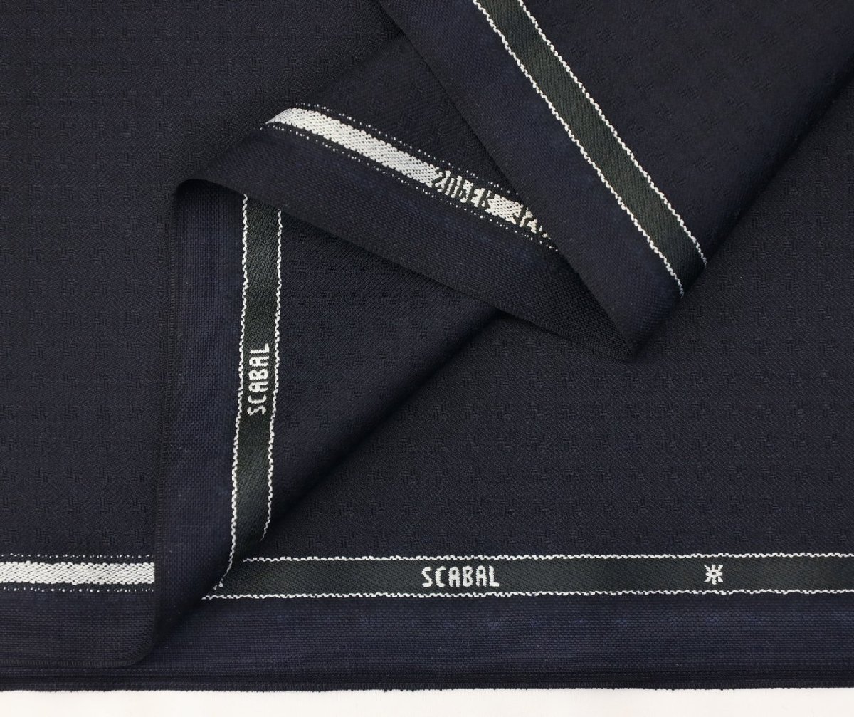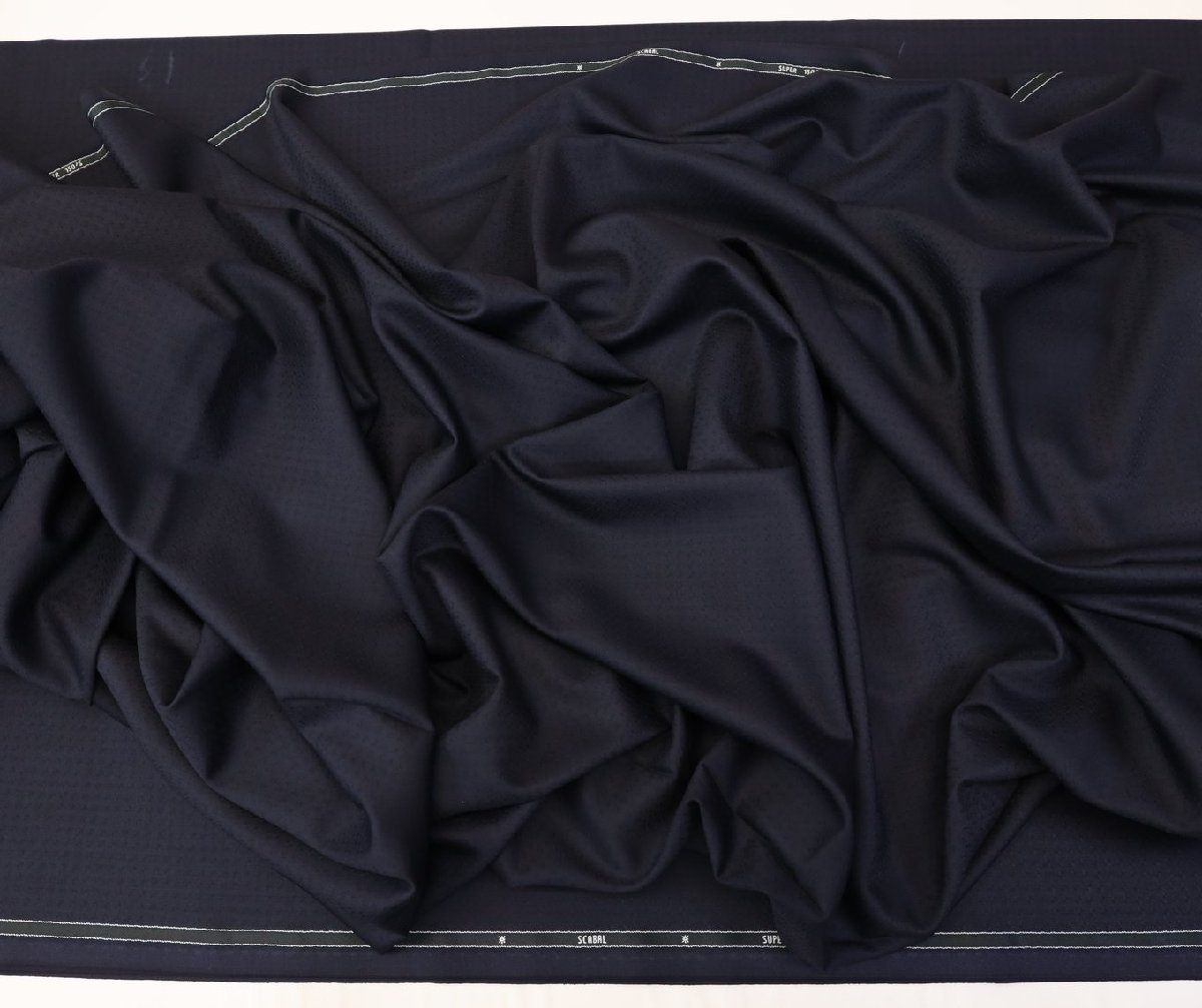 ★スキャバル社「ジェイソン」・最高峰のスーパー150・定番風濃紺小紋織柄・超気持ちいい肌触り・生地価格42万円・長さ3.5/3.3m