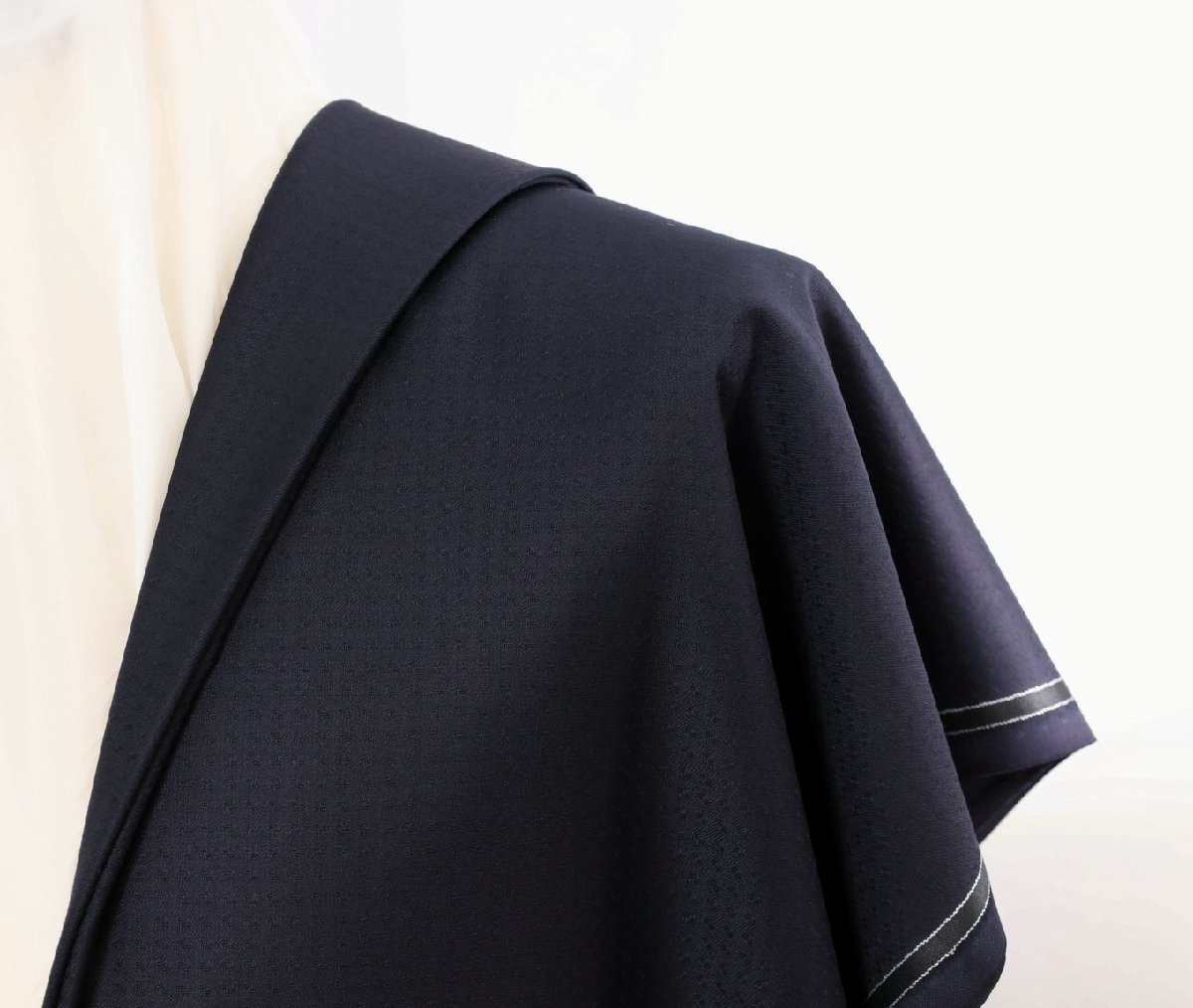生地の色は濃紺です。  生地のデザインは、小紋織柄です。