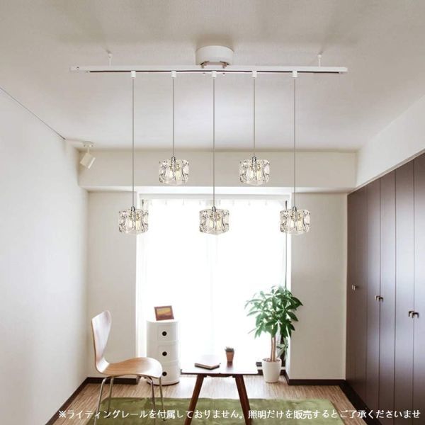 OTD 【7cm×7cm ダクトレール式 長短組みタイプ】電球付き ペンダントライト 5灯 クリスタルガラス 吊り下げライト 工事不要 LED対応