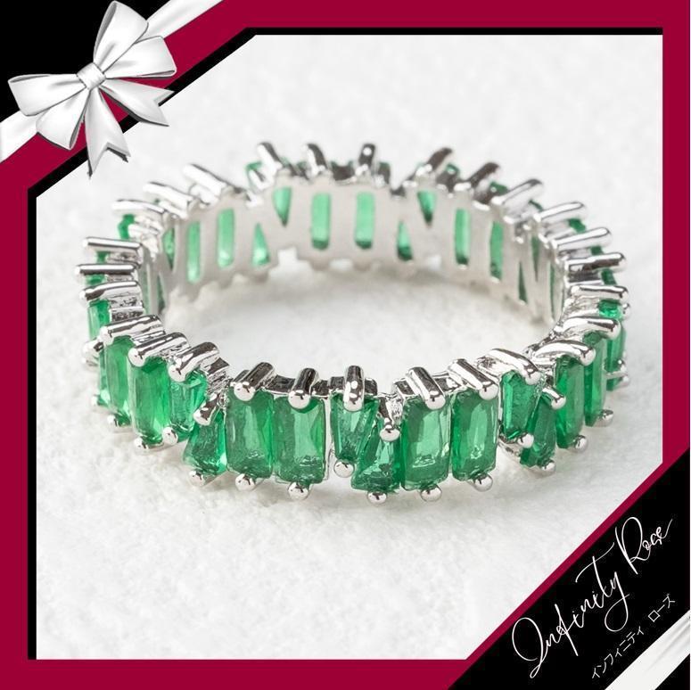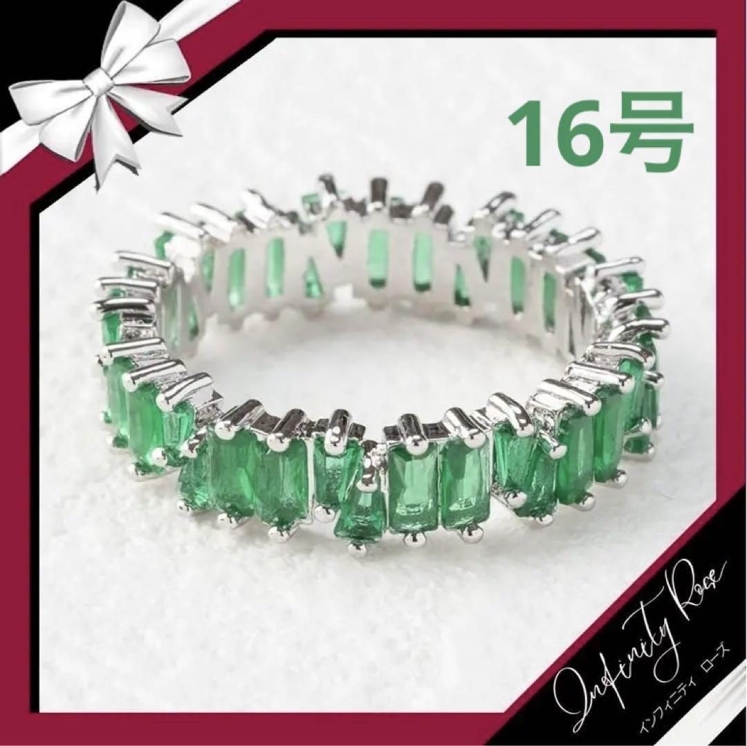 (R002SG)16号 シルバー×グリーンスクエアキュービックジルコニア(CZ)リング 爪留め指輪