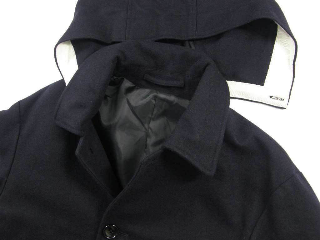 きれいめでもラギットなワイドステンカラー カシミヤを使用した高級感のあるイタリア製「VALLOMBROSA」のメルトン生地 クラシックで男性らしい雰囲気のワイドステンカラーにパッチポケットを施す事で、きれいめでもカジュアルな仕上がりに。 カシミヤを混紡したメルトン素材を使用することで、適度な厚みがある生地でも重すぎず軽すぎない快適な着心地に。 カジュアルスタイルのアウターとしてはもちろん、スーツやジャケットスタイルにもおすすめ。 ワイドシルエットなのでスーツやジャケットの上からでもストレスフリーに着用が出来ます。 ・フロントはボタン式 ・表下左右にポケット ・フード付き(取り外し可能) ・内ポケット4つ ・後下中央にスリット有 ※注目ポイント ■秋冬に丁度良い厚みの、カシミヤ混のイタリア製「VALLOMBROSA社」上質生地 ■スーツ・ジャケットスタイルに羽織る際、ワイドシルエットによりワンサイズ大き目を買う必要がない。 一般コートでワンサイズUPすると袖丈やシルエットに支障が出る。 その点このモデルは計算しつくされたサイジング ■カシミヤ混のドレッシーな素材ですが、ポケットをパッチポケットにすることでカジュアルなスタイリングにもなんなくハマります!フードを外してスーツスタイルにも◎ |