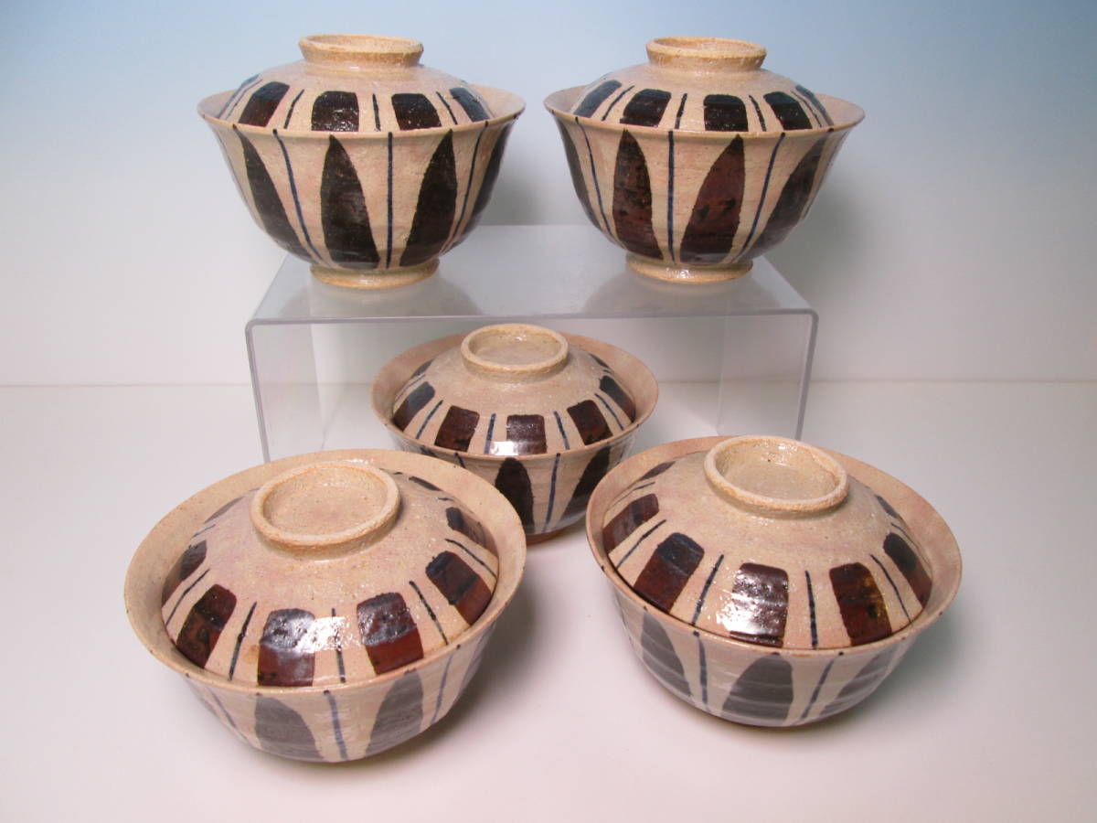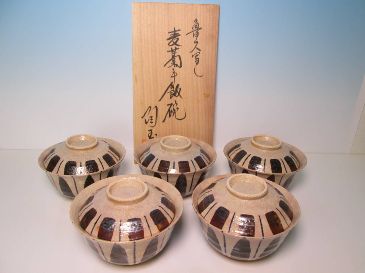 ☆陶玉作 北大路魯山人 写 麦藁手 飯碗 五客 (共箱)北大路和子撰 蓋向付/蓋茶碗/料理屋さんの器/懐石/割烹料理