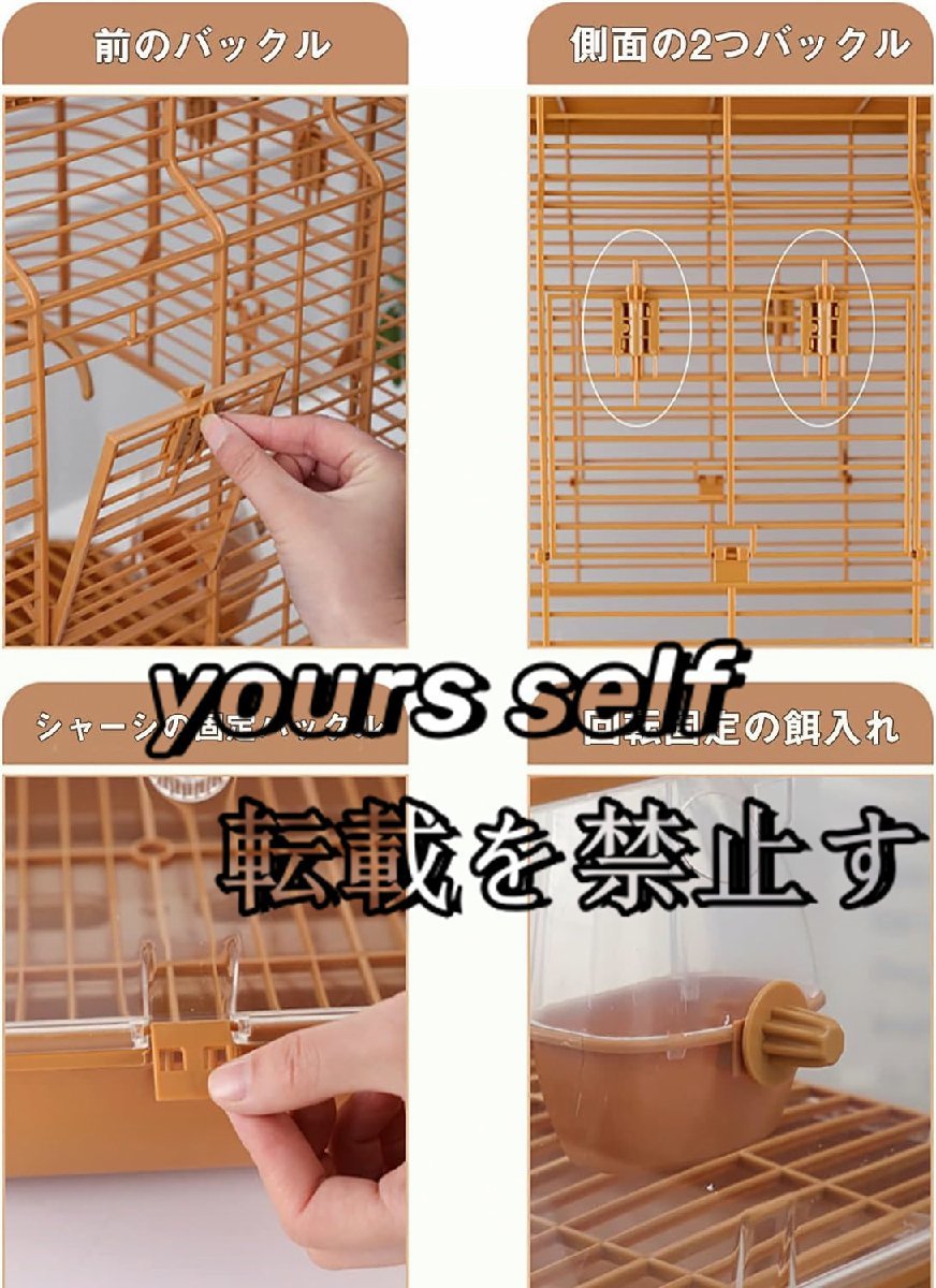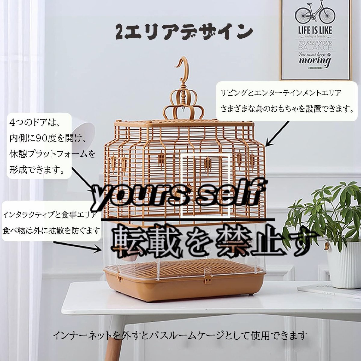 ★【掃除しやすい】この鳥かごのトレーの周りはバックル設計により、ケージ本体とトレーを簡単に分離して掃除しやすいです。した部分がプラスチックなので、飛び散りも減らすことができるます。