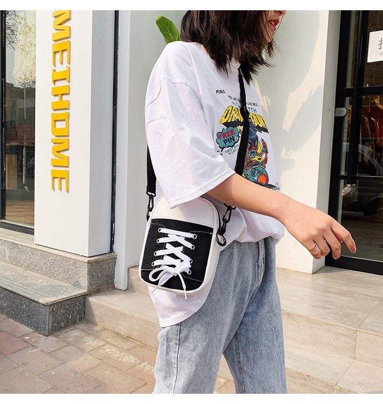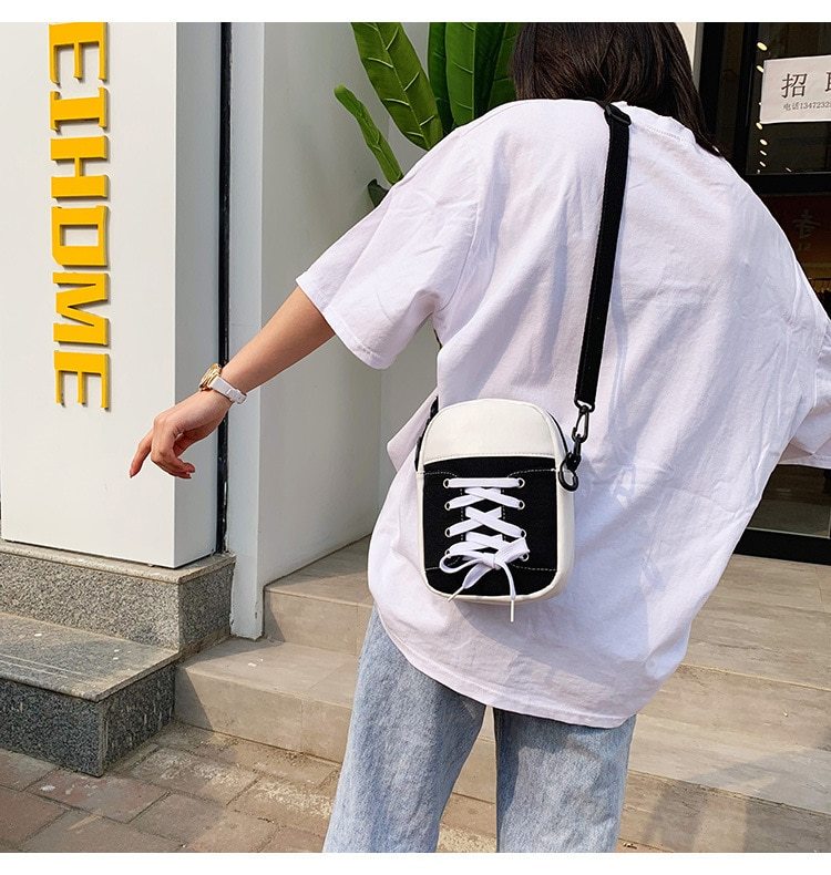 匿名配送【新品】カジュアル キャンパススニーカー デザイン ショルダーバッグ 黒◆シンプル かわいいデザイン ブラック◆ | |||