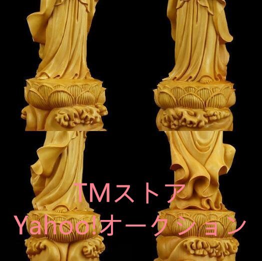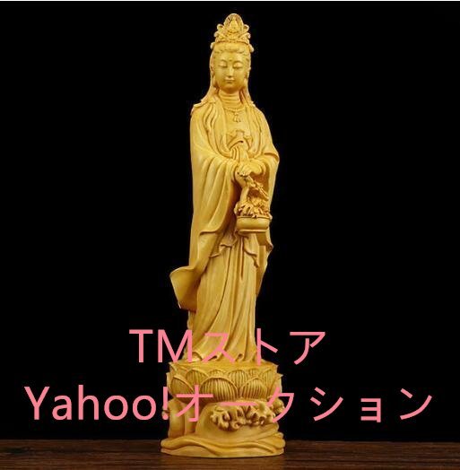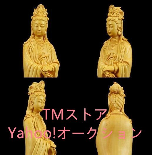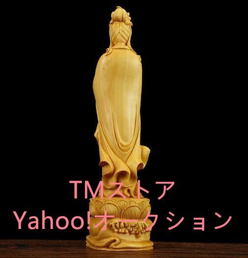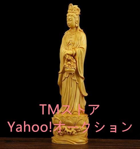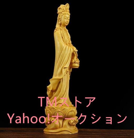 極美品 ★ 仏像 柘植 仏教美術 高さ約21cm 彫刻 提籃観音像 三十三観音 縁起物 ツゲ 観音菩薩 細密黄楊木彫 木彫り 魚籃観音立像