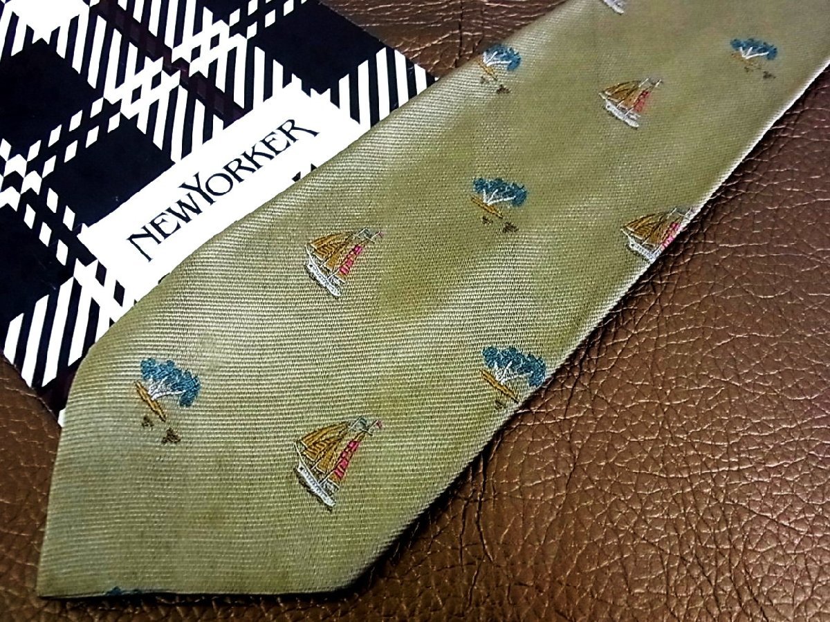 ★並品★4R00488【NEWYORKER】ニューヨーカー「船 ヨット 乗り物 樹木 柄」ネクタイ