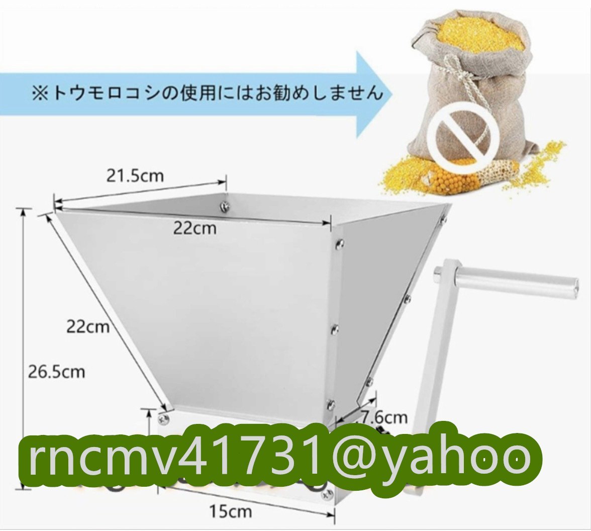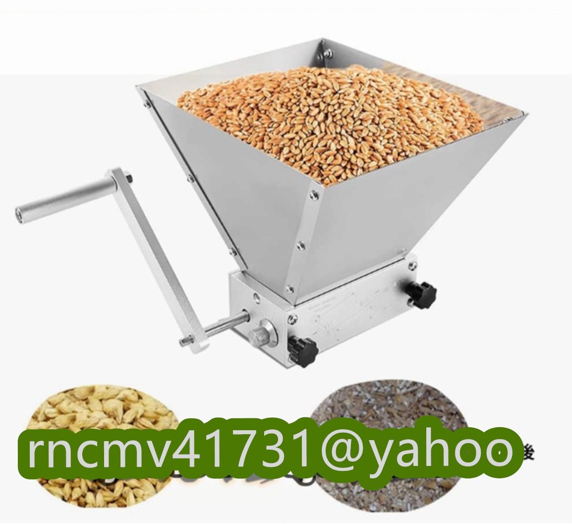 麦芽粉砕ロールミル主にモルト(麦芽)、大麦の粉砕に適用します。家庭でのビール/ワイン醸造用にお勧めです。※とうもろこし、大豆などの粉砕にはお勧めしません。 304ステンレス鋼材質ローラーは304食品級のステンレス鋼でできており、食品と直接接触できます。安心安全な作業を楽しめます。 3.5kg大容量厚み1mm硬化アルミ製ホッパー、一回に最大3.5Kgの穀物を粉砕できます。 作業精密度調整可能ローラー調整可能距離:0.64-2.54 mm。ニーズに合わせてローラーギャップを調整することで、粉砕厚さを簡単に調整できます。 【商品スペック・仕様】: ローラー材質:304ステンレス鋼 ローラーサイズ:φ28 x 127mm ボディーとハンドル材質:アルミニウム合金 ホッパー容量:3.5Kg/7.7LB ローラー調整可能な距離:0.025-0.1インチ(0.635-2.54 mm) 商品にご注意すべきこと 1.ご使用する前に保護膜を剥がしてください。 2.手動粉砕機は完全に粉体状態に到達するまで研磨することができず、粒と粉体の混合状態から出てきますが、より細かくしたい場合は、さらに数回粉砕する必要があります。 3.子供の手が届かないところに置いてください。 4.本製品は錆びにくいステンレス鋼とアルミニウム合金で作っていますが、商品寿命を延長するために使用後はしっかり洗ってから湿気を拭き取り、暗く乾燥した場所で保管してください。 5.使用方法:手動のハンドル又は3/8インチのドリルに接続して作業できます。安全使用のためドリル回転速度は200-300RPMにしてください。