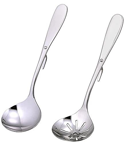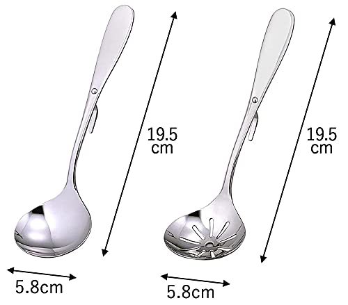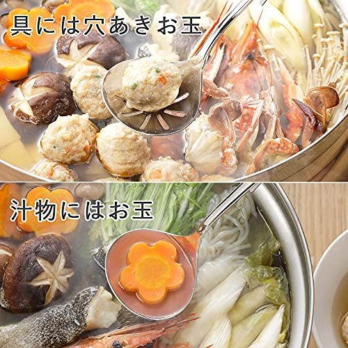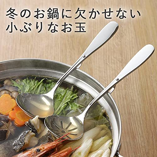 卓上お玉セット・シルバー 卓上お玉セット 19461・・Style:卓上お玉セット・サイズ:(約)幅5.8x高さ2.5x全長19.5cm・重量:約60g・材質:18-8ステンレス・原産国:日本・セット内容:おたま×1、穴あきお玉×1説明 商品紹介 鍋物の必需品で汁物にお玉、具だけの時は穴あきお玉と使い分け。お鍋や容器のフチにかけられるフック付き。 品番 19461 材質 18-8ステンレス サイズ 幅5.8×全長19.5×高さ2.5cm 重量 お玉:54g、穴あきお玉:51g 生産国 日本 JANコード 4957423013376 より ●鍋物の必需品で汁物にお玉、具だけの時は穴あきお玉と使い分け ●お鍋や容器のフチにかけられるフック付き