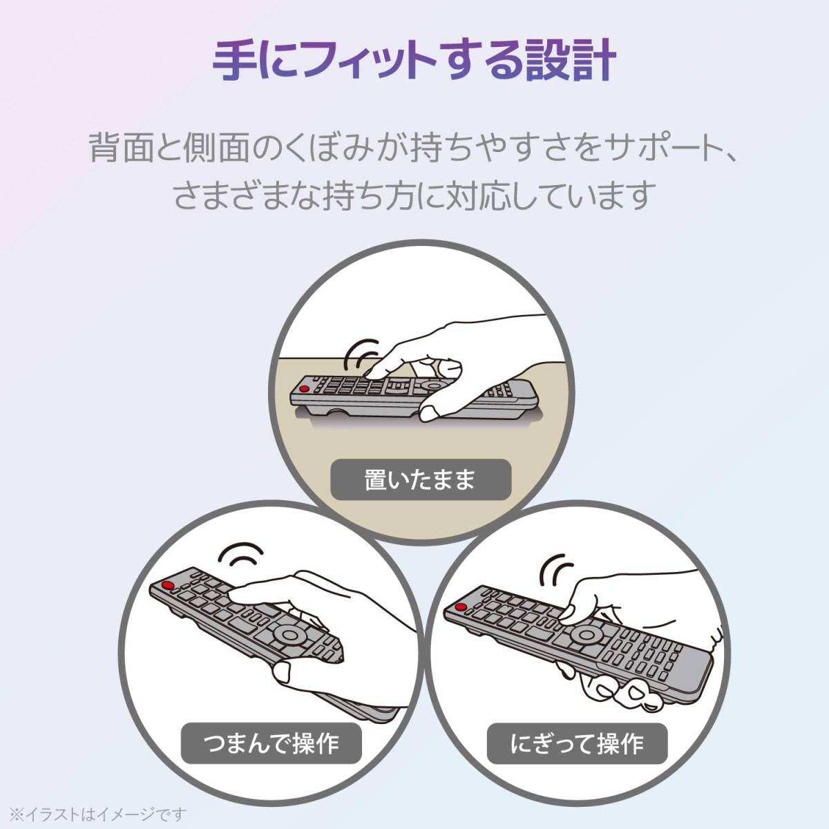 ■リモコン操作時に多い3つの使い方(つまんで操作、握って操作、置いたまま操作)に対応しています。