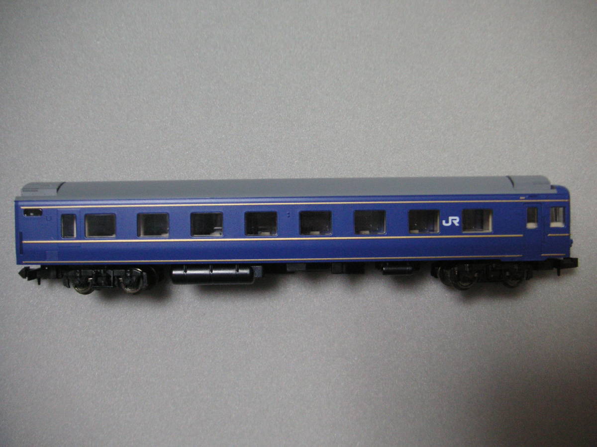 ご覧いただき、ありがとうございます。下記をお読みいただきまして、入札をご検討ください。【商品】○トミックス 24系25形客車(北斗星 東日本仕様) オハネフ25-0 1両 ※クーラー更新 2段寝台・はしご表現なし。ボディマウントTNカプラー非対応床板。ライト基盤なし。 ※オークション入札単位1個=画像1枚目のものが全てです。 ○車両状態 ライト:なし 動力:なし ボディ:主観的には美品ですが、一度個人の手にあった鉄道模型ですので、「中古品」とさせていただき、ノークレーム、ノーリターンにてお願いします。 ○保管状態 暗所、禁煙 ○梱包して発送 ○付属品 なし。 【発送方法について】○発送は「ゆうパック」(補償あり)、「レターパックプラス」「定形外350円」(補償なし)のみとさせていただきます。○ご入金期限は原則として、オークション終了翌日から2日以内にお願いします。 【その他注意事項】○落札後の連絡は、「取引ナビ」のみで行います。○ライト・動力は発送前にチェックを行っています。発送後の不具合について、当方は一切対応できません。代替品もございませんので、ノークレーム、ノーリターンでのお取引をお願いします。○鉄道模型の商品状態の判断は、個人差があります。そのことをご理解いただけない方や、極端に神経質な方は、トラブルの原因になりかねませんので入札をご遠慮下さい。○イタズラであることが疑わしい場合など、取引に支障があると判断した場合は、予告無しに入札を削除する場合があります。○双方、気持ちよくお取引したいと思っておりますので、よろしくお願いします。
