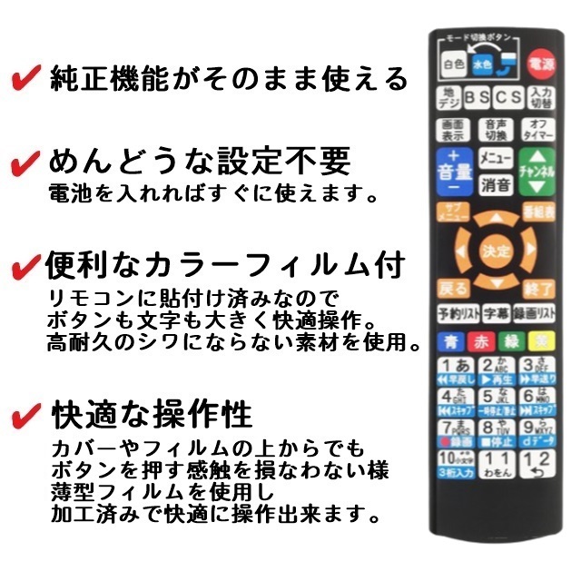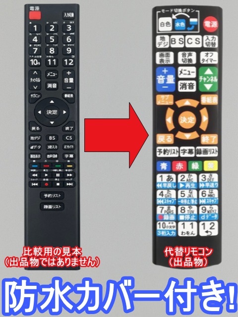 | 【商品名】 IRIS OHYAMA LT-ARC5 代替リモコン 【対応機種】 32WB10P 40FB10P 43UB10P 50UB10P 55UB10P 65UB10P LT-24B320 43UB10PB 50UB10PB 55UB10PB 等用 画像1枚目左側のリモコンが付属する機種に使用出来ます。 上記機種以外については、質問欄よりメーカーと型番をご連絡頂ければ、対応品のご案内をしております。 【商品について】 右側の代替リモコンが出品物になります。左側のリモコンは見本画像です。 タイトル機種のリモコン信号を入力した、設定不要で使える純正品と同等の代替リモコンです。 リモコン左上のモード切換ボタンにて、各機能のボタンをお使いいただけます。 商品に不具合があった場合は代替品交換かご返金にて対応させて頂きます。 【付属品について】 防水リモコンカバーをお付けします。 ボタン機能を印刷した薄型フィルムはリモコンに貼付け済みです。 乾電池は付属しません。別途ご用意下さい。(単4乾電池×2本) 【発送について】送料無料 迅速発送を心掛けております。土日祝日はお時間を頂く場合ございます。 ポスト投函配達となり、日時指定は出来ません。 | ||