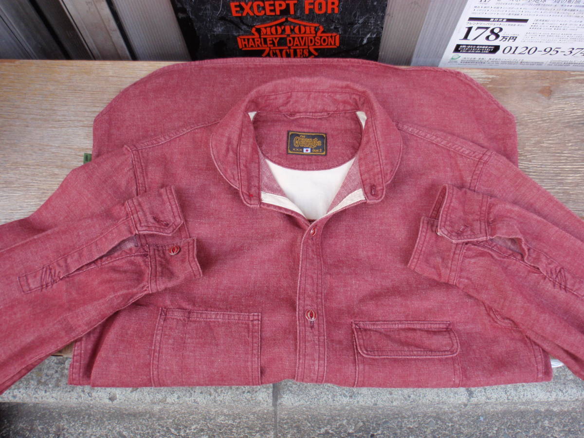 中古品ですので少し使用感ありますが、上手に使っていたので目立った汚れや傷は無く状態は良いです。日本製ゲルガのえんじ色なワークシャツになるかと思います。元からボタンにはスレがありますのでご了承ください。サイズは2表記で、実寸では平置きで肩幅42センチ、身幅50センチ、着丈70センチ、袖丈61センチ位になります。正規品。