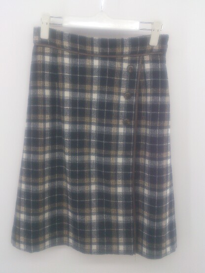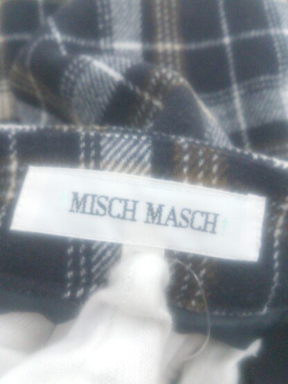 ◇ MISCH MASCH ミッシュマッシュ チェック パイピング 膝丈 台形 スカート サイズ38 ネイビー ホワイト レディース P