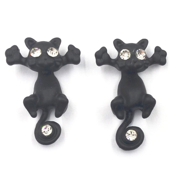 キラキラした高品質ラインストーンを猫の瞳にあしらったエレガントで可愛らしい猫モチーフのピアスです。