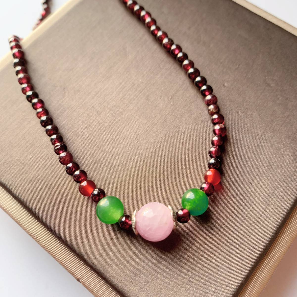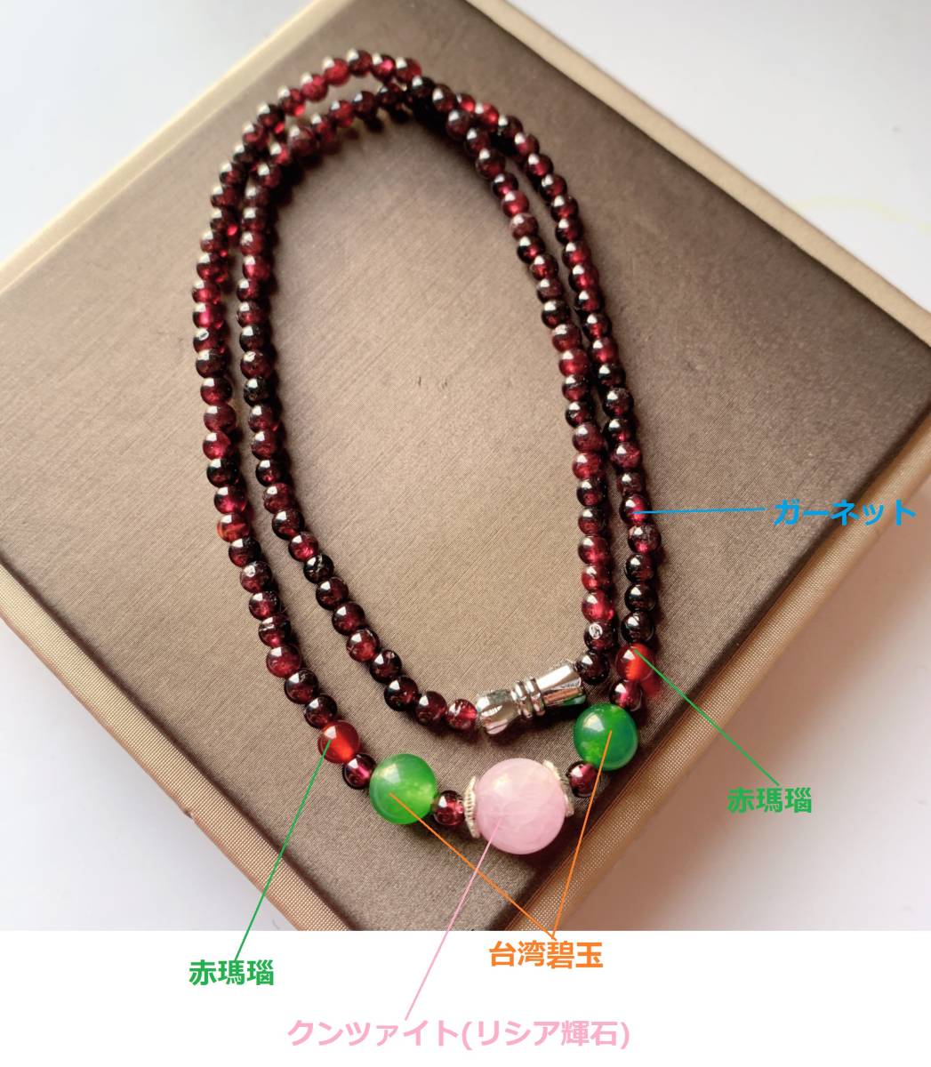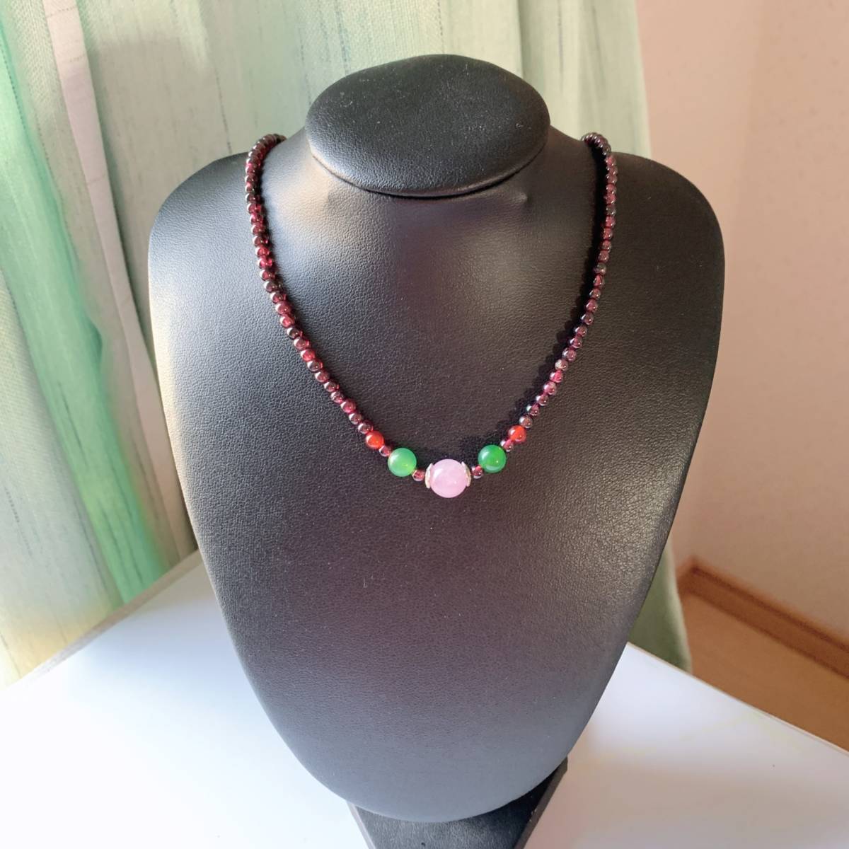 ◇ガーネット+台湾碧玉+クンツァイト(リシア輝石)+赤瑪瑙◇ネックレス◇パワーストーン◇天然石◇巾着袋付き◇プレゼントにも010P122602