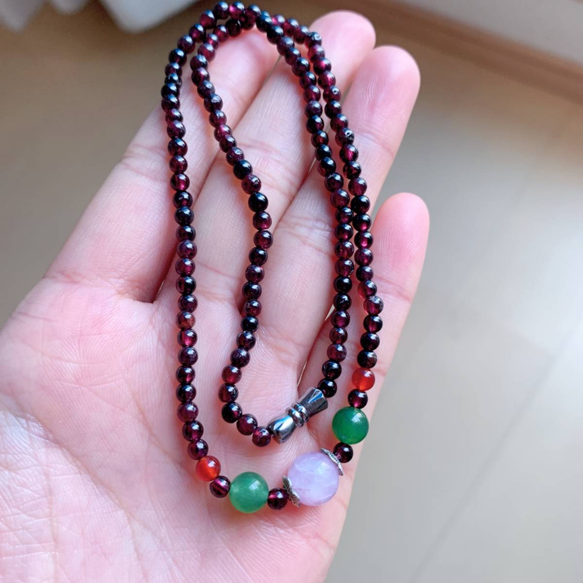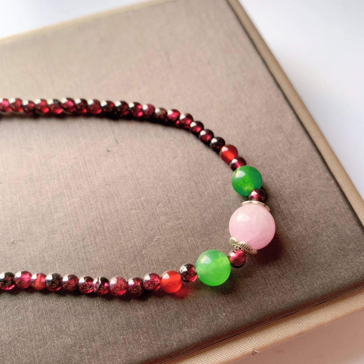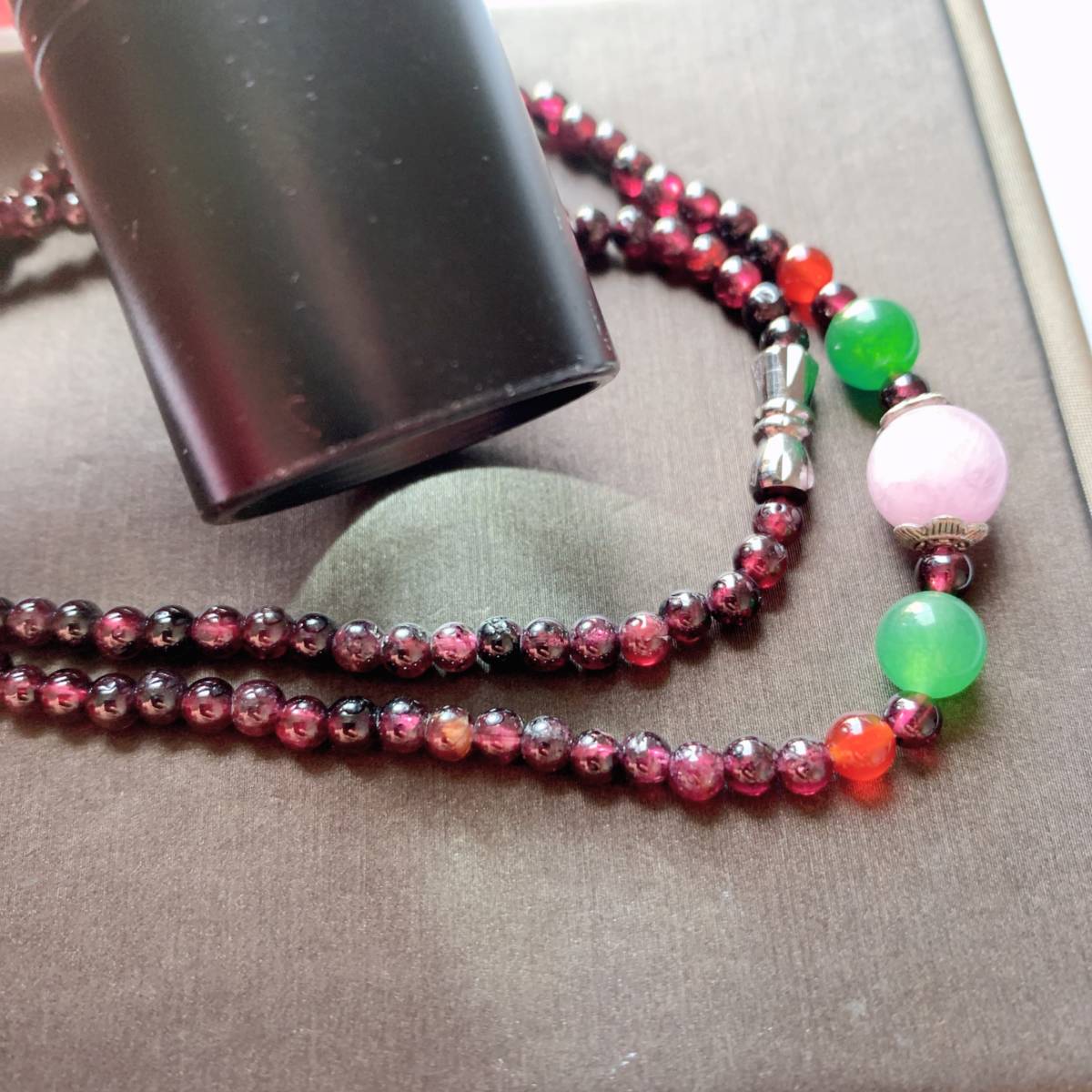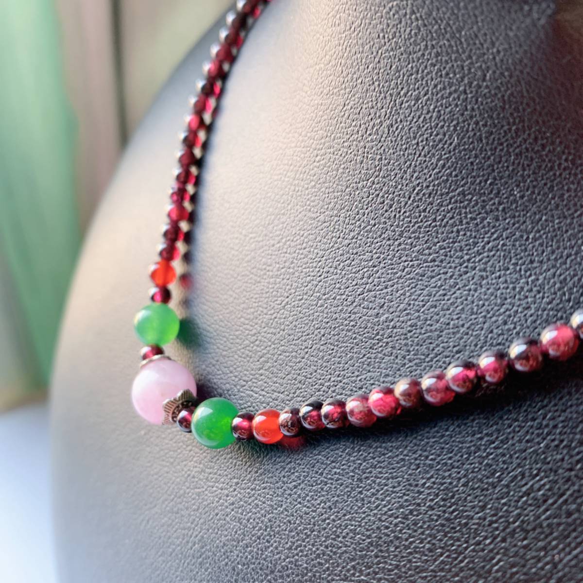 ◇ガーネット+台湾碧玉+クンツァイト(リシア輝石)+赤瑪瑙◇ネックレス◇パワーストーン◇天然石◇巾着袋付き◇プレゼントにも010P122602