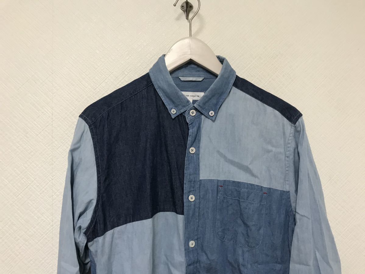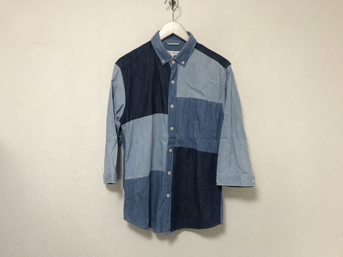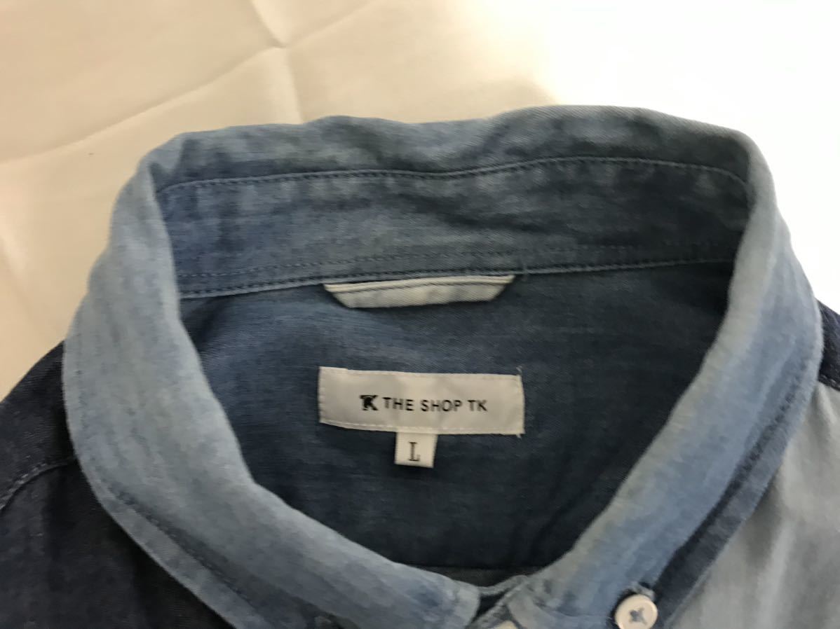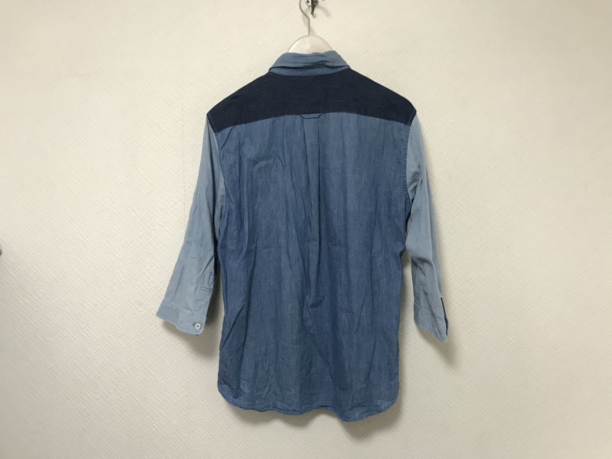 商品名:本物タケオキクチtkTAKEOKIKUCHIコットンデニム切り替え7分袖長袖シャツメンズサーフアメカジミリタリービジネススーツブルー青L
