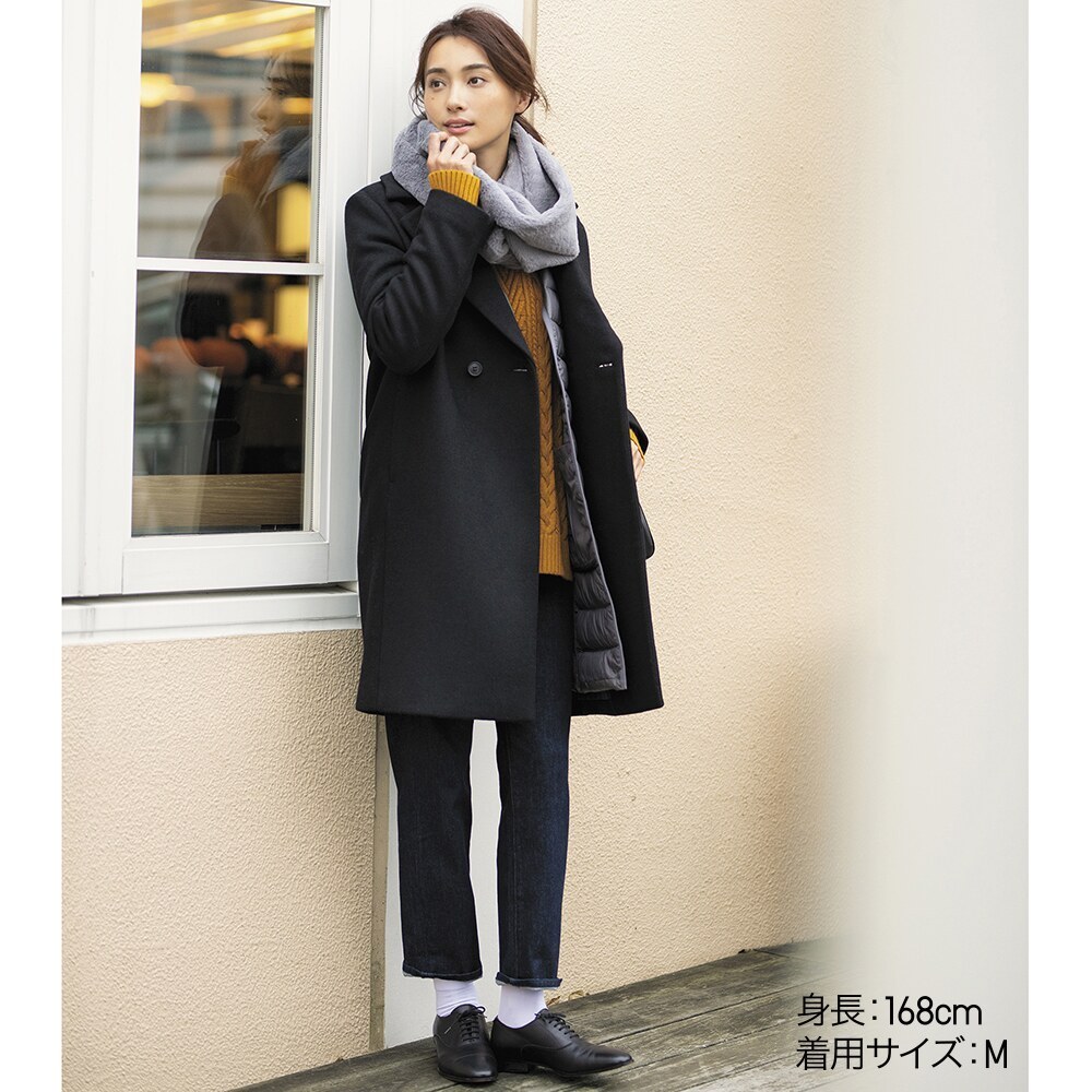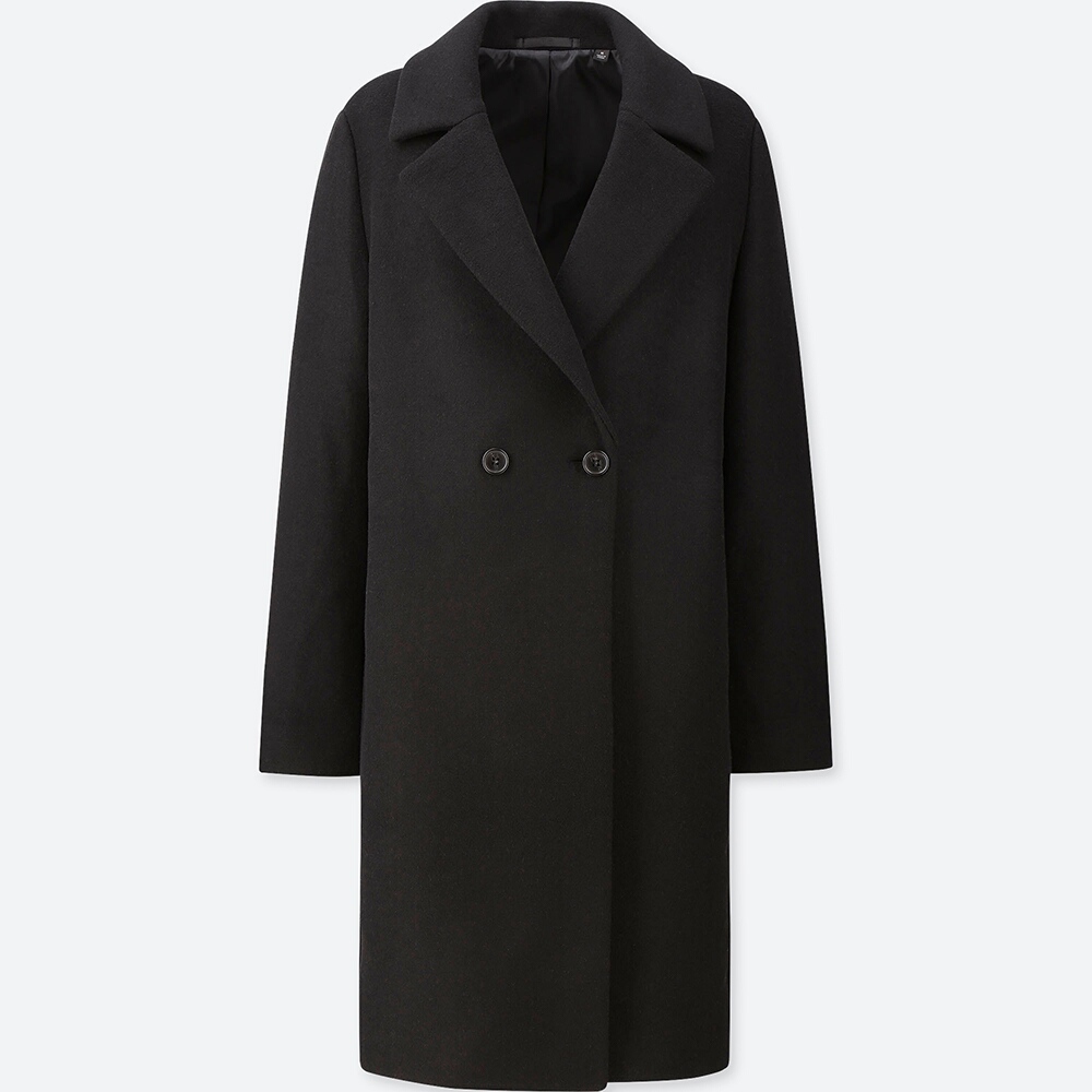 Lサイズ【ユニクロ】ライトウールブレンドテーラードコート(黒)