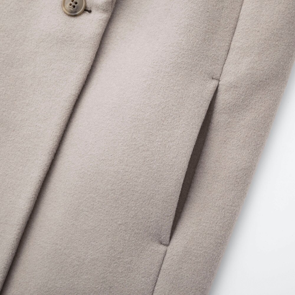 ・軽さと暖かさを両立したポリエステルとウールのブレンド素材。
