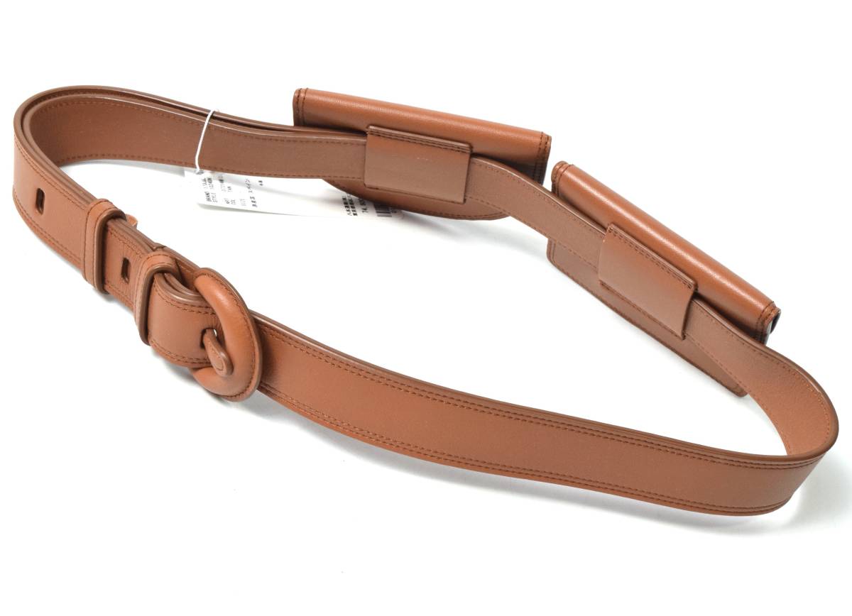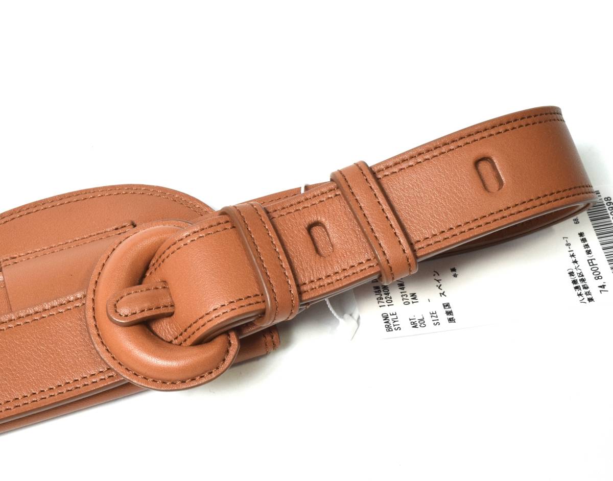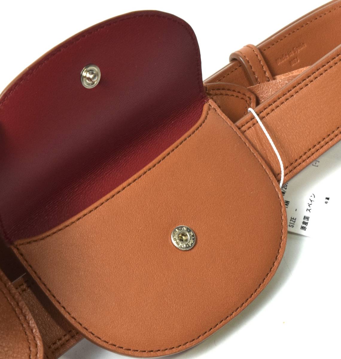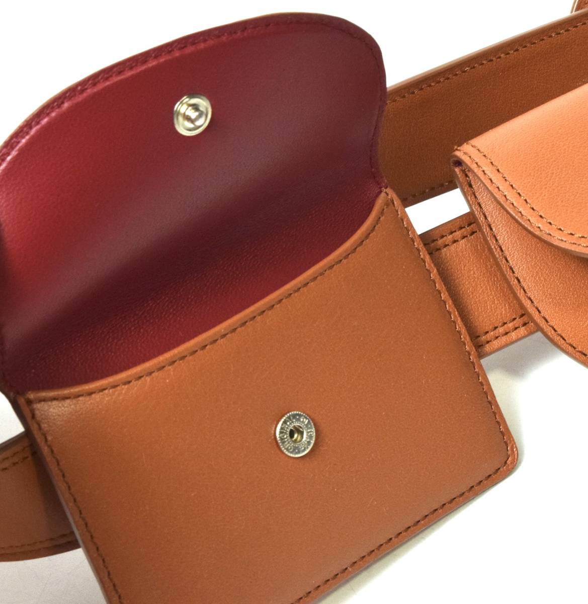 レザー フラップ ポーチは取り外しが可能で、外せばシンプルベルトとしても使用できます。 取り外し可能なレザー フラップ ポーチーはカードやコインを収納できるスクエアポーチ。背面にはベルトループがあり、お手持ちの別のベルトに通してスタイリングのアクセントとしても活躍します。 定価は税込みで74800円 スペイン製 | ||||||||||||||||