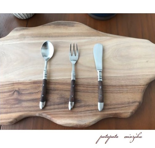 真鍮 ケーキフォーク ブラスカトラリー ウッドハンドル シルバー カトラリー