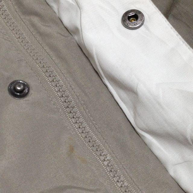 寸法(平置き) 肩幅約58cm 身幅約63cm 後ろ着丈約73cm 袖丈約59.5cm 表記サイズはMENS Mです。 フードとライナーは欠品です。 合わせはスナップボタンとファスナーです。 裾と首回りはアジャスターで調節可能です。 合わせの受けなどに少し汚れがあります。 裾などに少しほつれがあります。 一部を撮影してあります。 御理解の上、御入札を御願致します。 | |